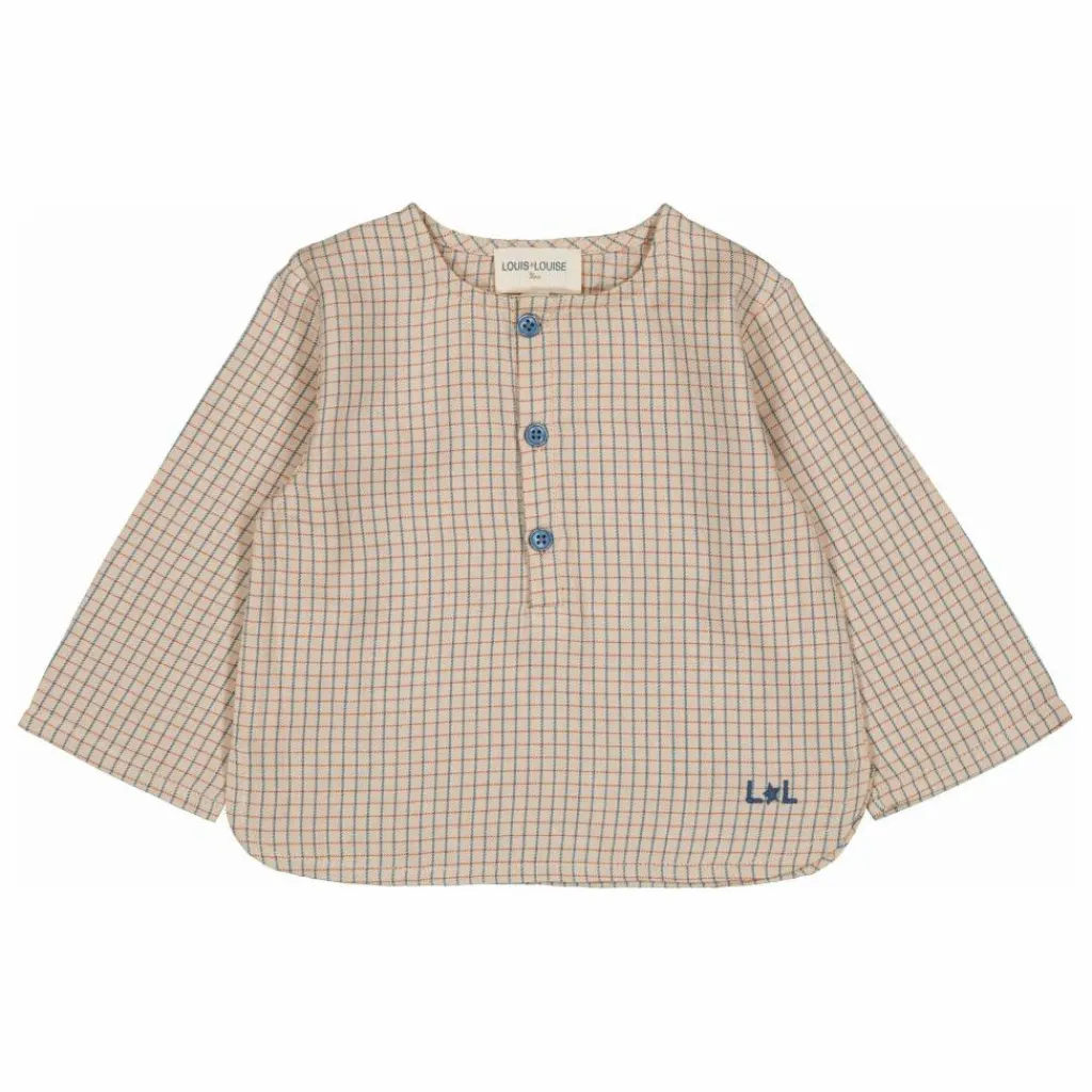 Détails : Kurta col mao, fendue sur les cotés, broderie LL, patte de boutonnage sur le devant.