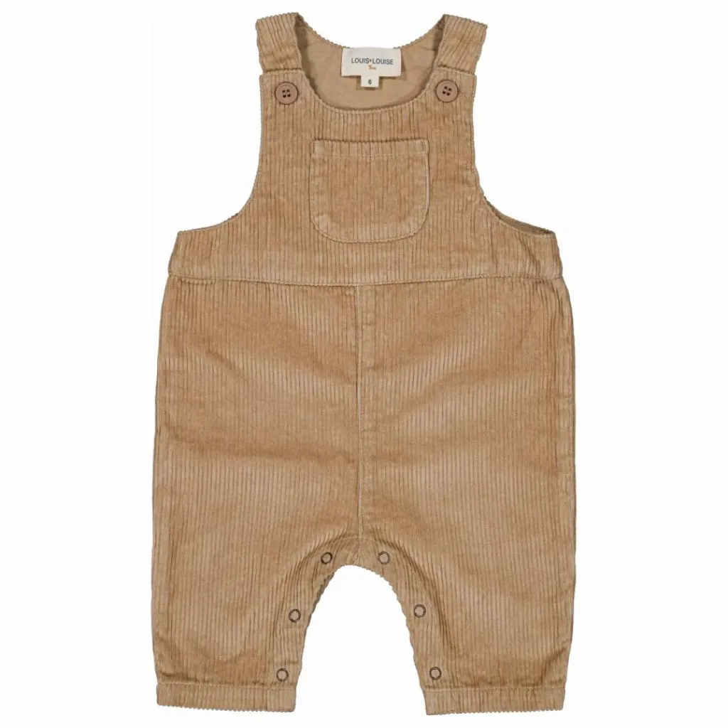 Détails : Salopette boutonné sur le devant, poche plaquée poitrine, boutons pressions à l’entrejambe.