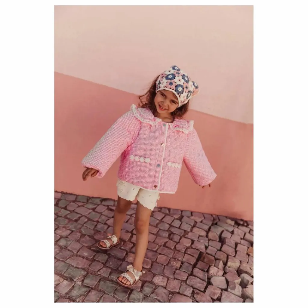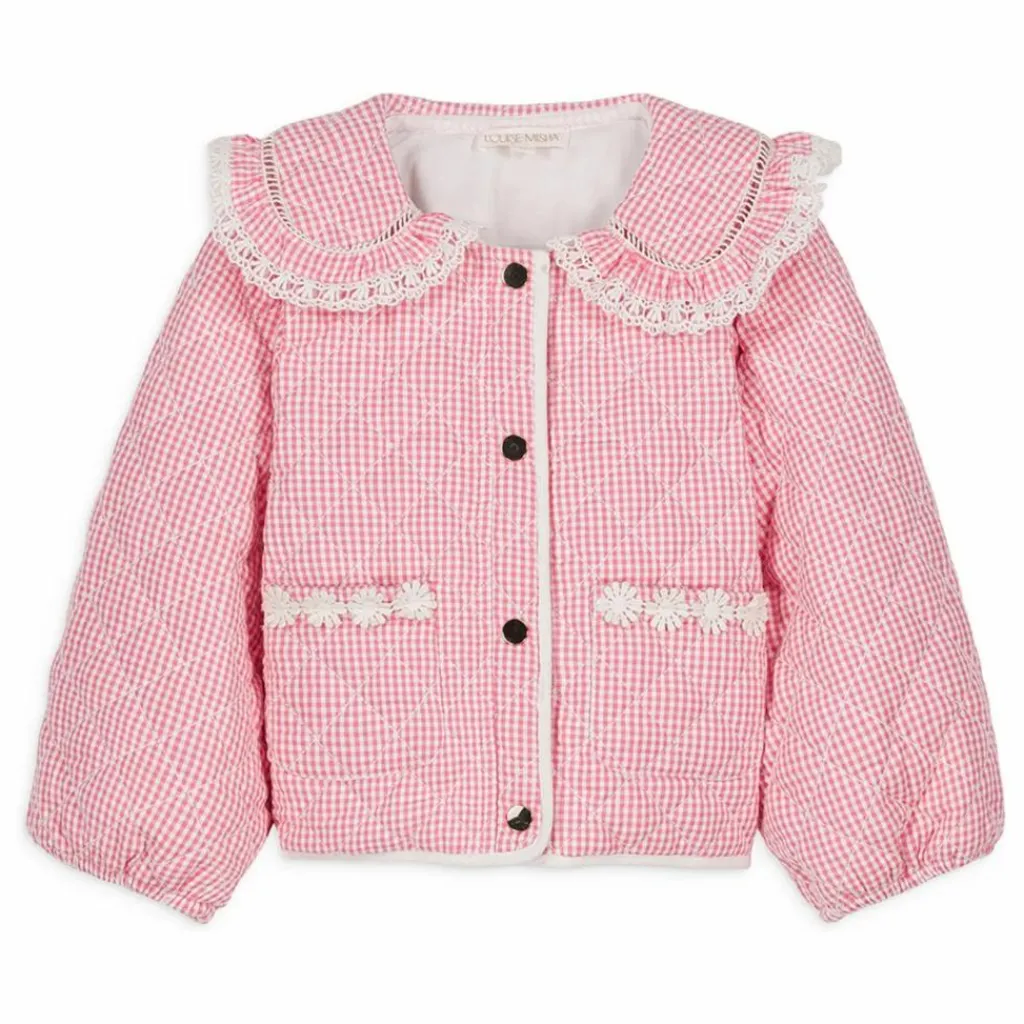 Veste matelassée en vichy effet gaufré avec jeu de surpiqûres losange.