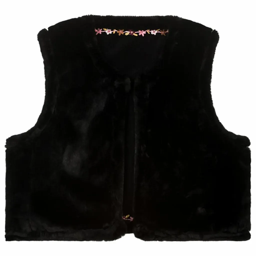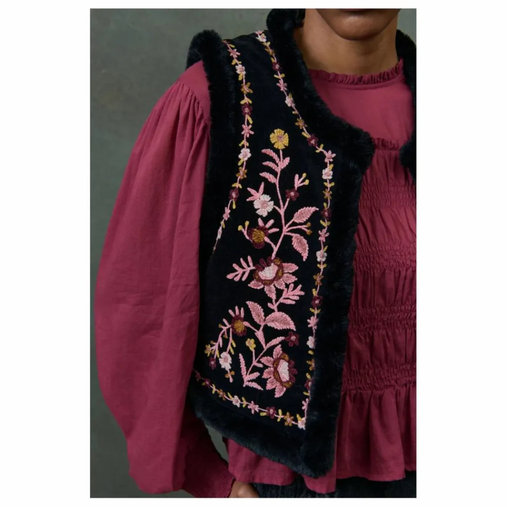 Une face en velours de coton brodée, et une face en fausse fourrure.