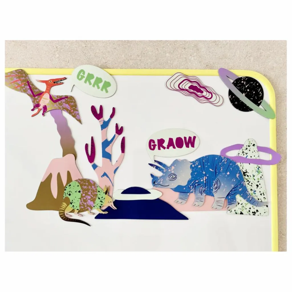 - Les dinosaures est un grand classique dans l’univers des enfants. Ces magnets les aident à découvrir et à mieux comprendre le monde qui les entoure en explorant un terrain de jeu où les possibilités sont multiples. Des possibilités d’autant plus infinies grâce à la superposition des magnets qui permette de créer et recréer toutes les histoires qui lui passent par la tête, avec pour seule limite son inventivité et son ingéniosité. La découpe des formes est délicate, précise et arrondie pour que l’enfant ne se blesse pas. Par ailleurs, Ma Cabane à Rêves a conçu ses produits dans une démarche éco-responsable pour suivre l’enfant sur plusieurs années.