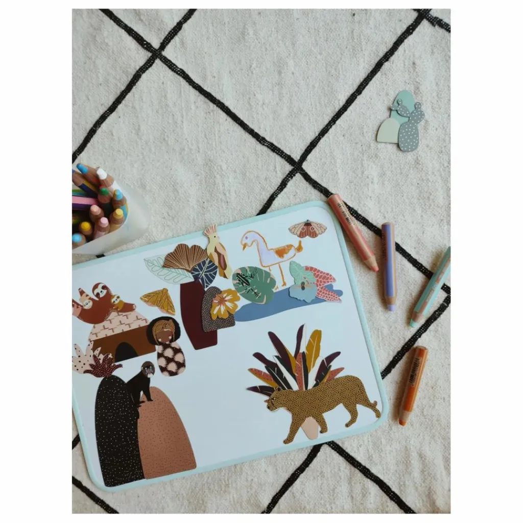 Sur ce tableau blanc magnétique, l’enfant pourra y combiner magnets avec dessin et écriture. Laissez les enfants s’exprimer librement ! Doté d’une surface blanche, utilisez des feutres d’ardoises effaçables à sec pour écrire sur le tableau. Nous conseillons cependant l’utilisation des crayons Stabilo Woody 3 in 1. Pourquoi? Ils ne sèchent pas, ne sentent pas, sont lavables à l’eau.