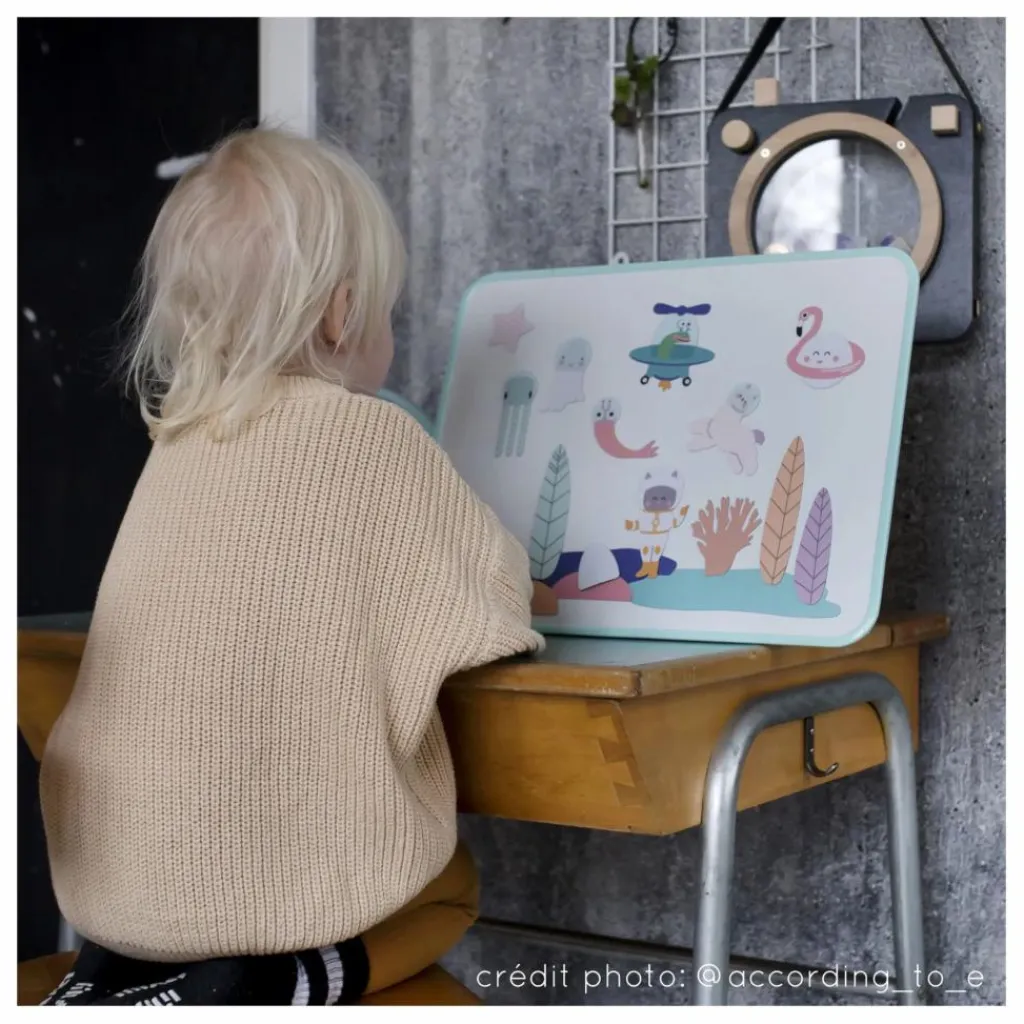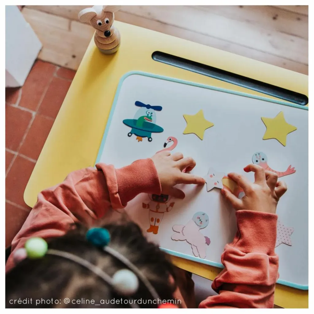 Légère, fine, et incassable, ce tableau magnétique s’emmène partout. Un produit 100% adapté aux enfants !Un tableau éco-responsable conçu et fabriqué en France.