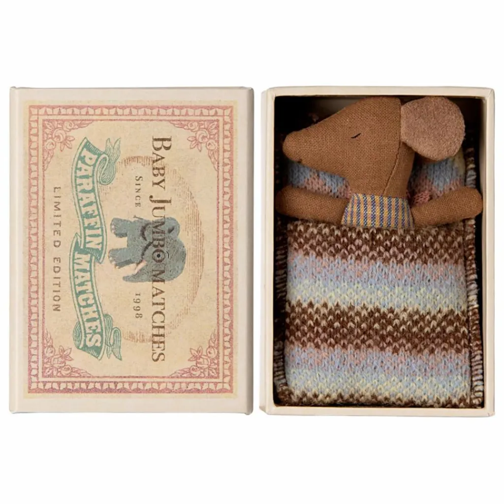 - Un classique Maileg : cette souris mi-endormie/mi-éveillée est prête pour des heures de jeu et dormira au chaud dans sa petite boîte. Les vêtements et le linge sont fabriqués dans des tissus doux aux imprimés uniques.
