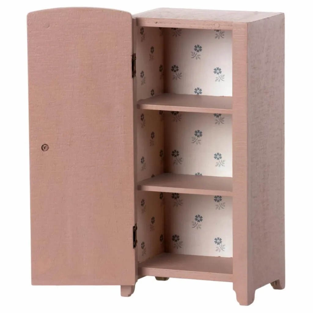 - Cette armoire à l’allure vintage présente une belle impression florale en relief sur la façade et un magnifique papier peint imprimé à l’intérieur. Grâce aux étagères, tout sera organisé. Cette armoire s’adapte à la maison de poupée Maileg.