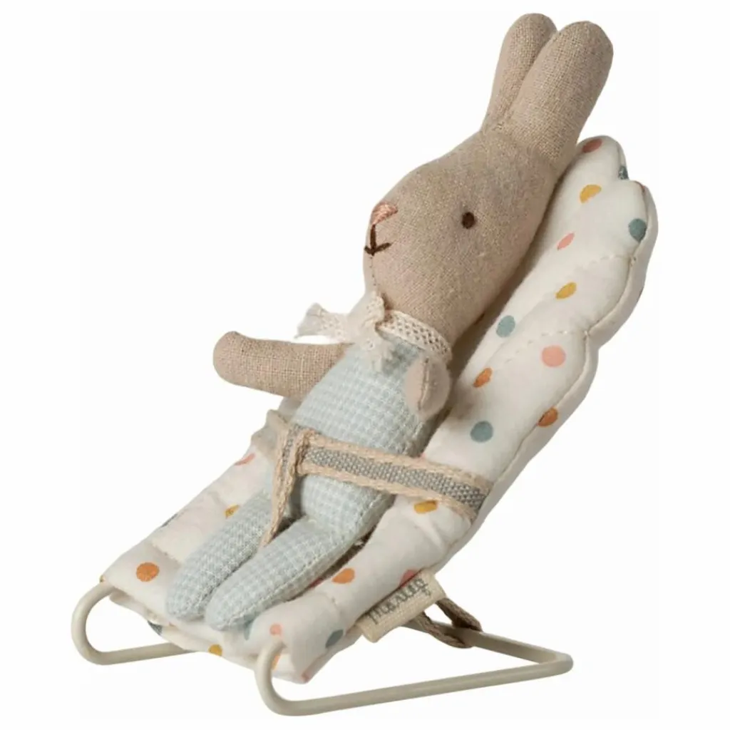 - Avec ce transat bébé, il est facile d’endormir vos petits amis. La base en métal est recouverte d’un très joli tissu. Le transat convient parfaitement aux lapins MY et aux bébés souris.