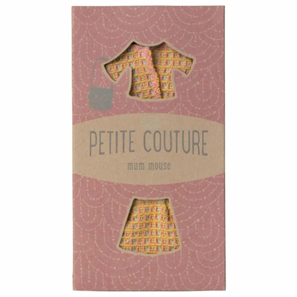 - Si vous cherchez une nouvelle tenue à votre souris Maman, cet ensemble sera un bon choix. Le tailleur se compose d’une veste à manches courtes et d’une jupe assortie. Il s’accompagne d’un sac à main bleu, accessoire indispensable à cette tenue.