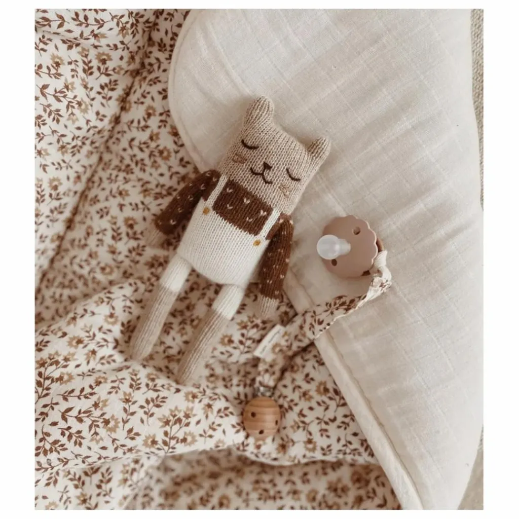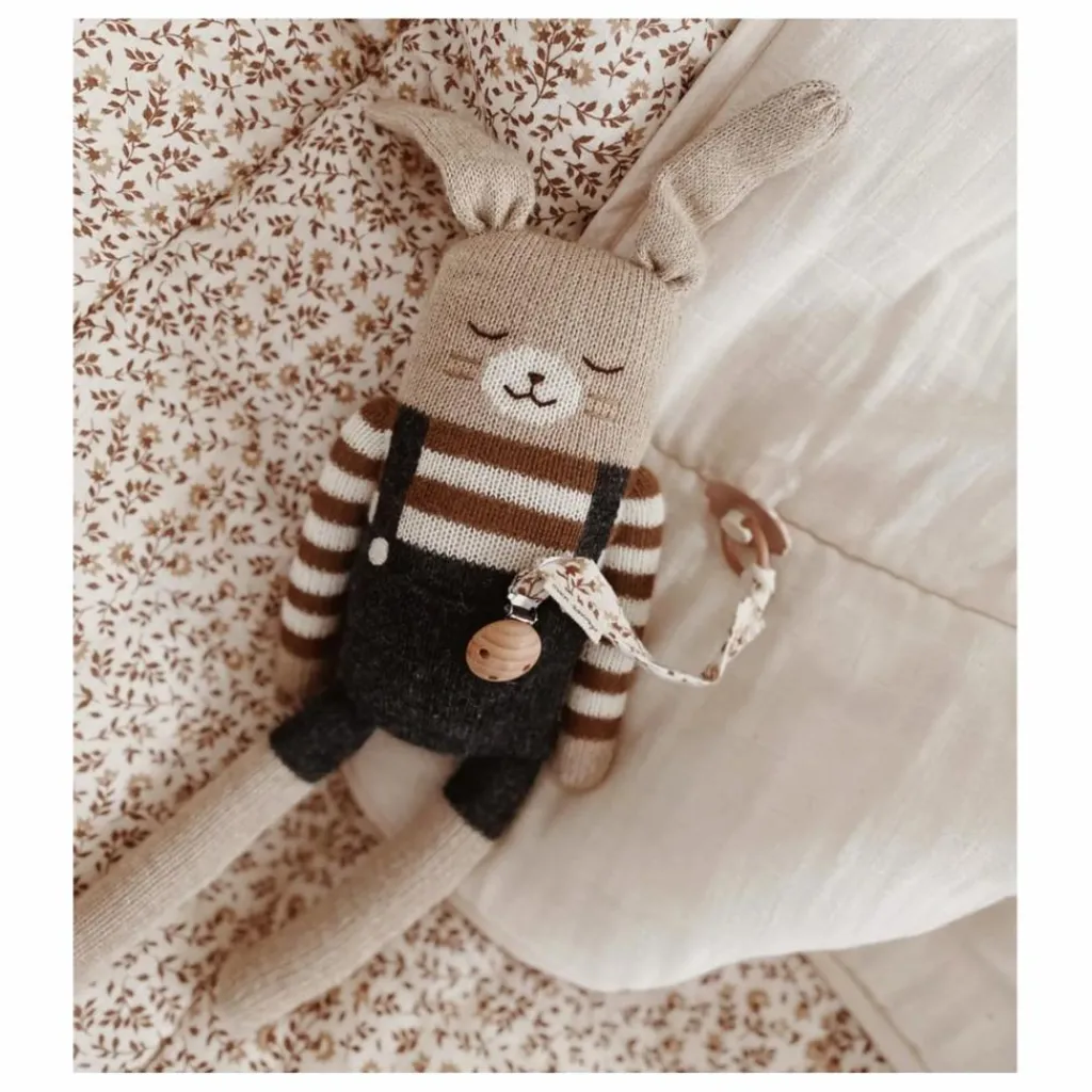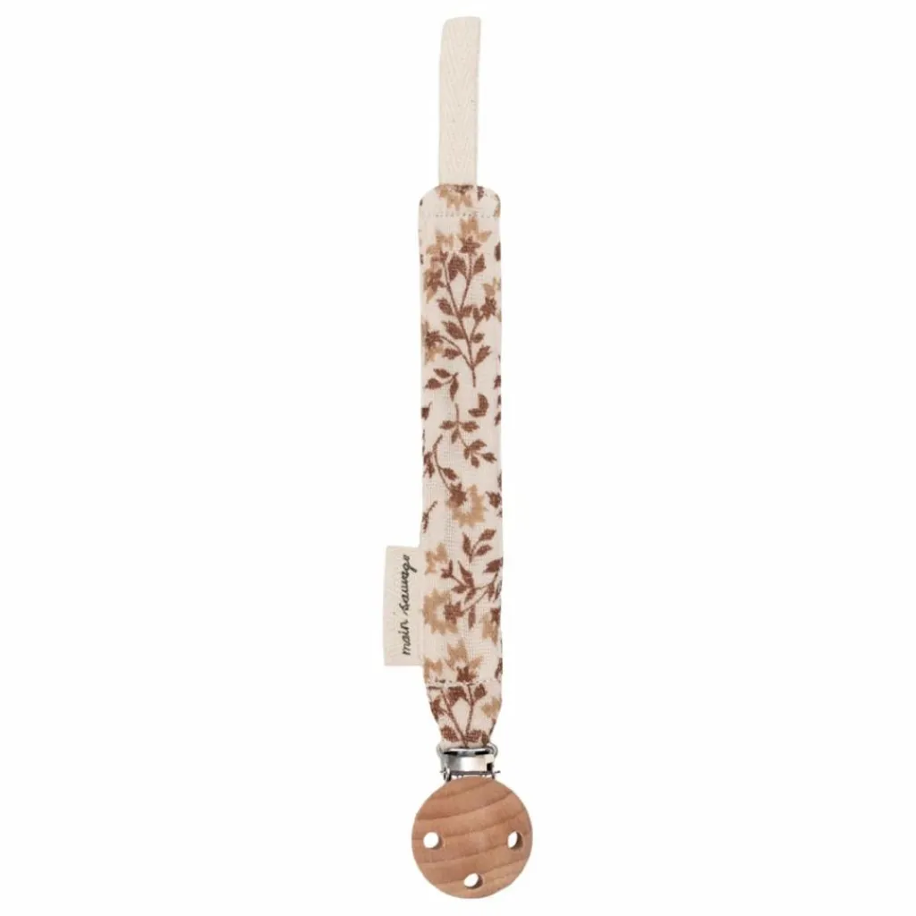 Pratique pour garder la tétine toujours à portée de main et charmant pour compléter les tenues de bébé, notre attache-tétine est un incontournable. Son clip en métal permet une fixation facile aux vêtements, tandis que la tétine se sécurise grâce à un cordon à nouer délicatement.