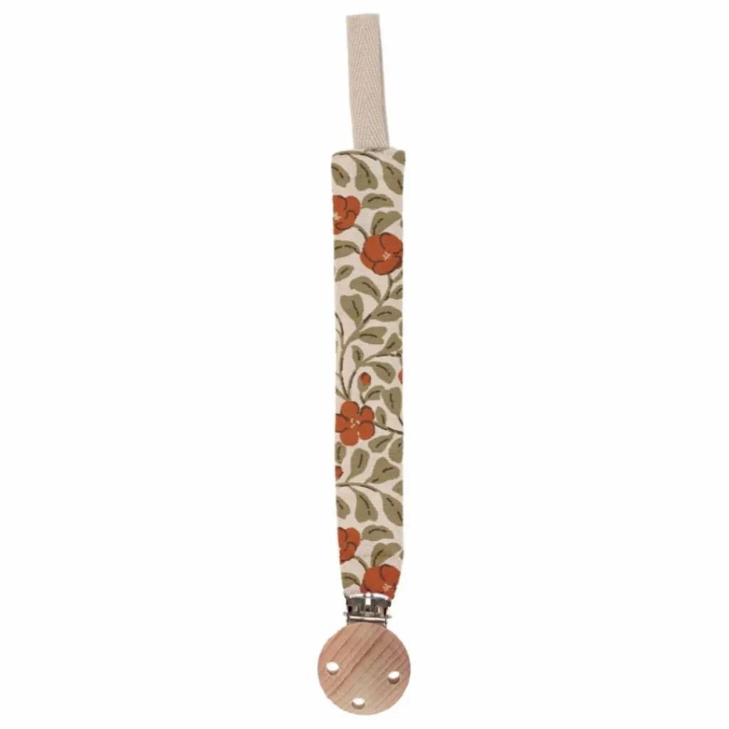 Pratique pour garder la tétine toujours à portée de main et charmant pour compléter les tenues de bébé, notre attache-tétine est un incontournable. Son clip en métal permet une fixation facile aux vêtements, tandis que la tétine se sécurise grâce à un cordon à nouer délicatement.