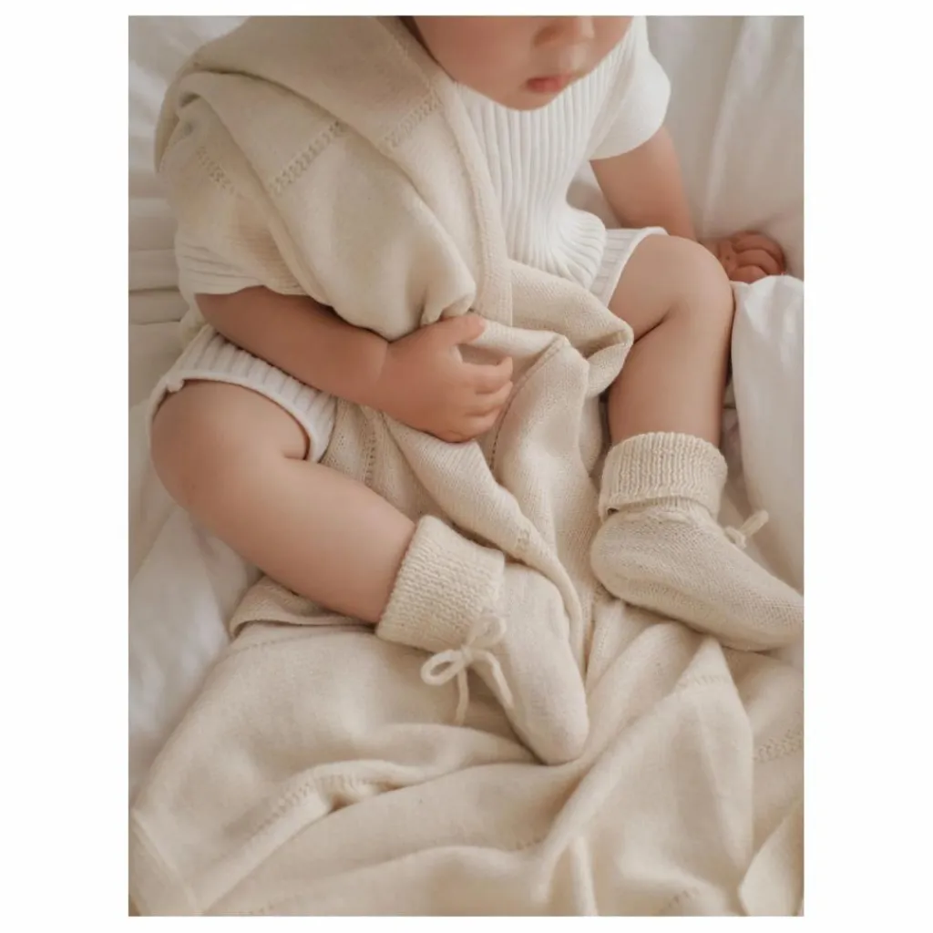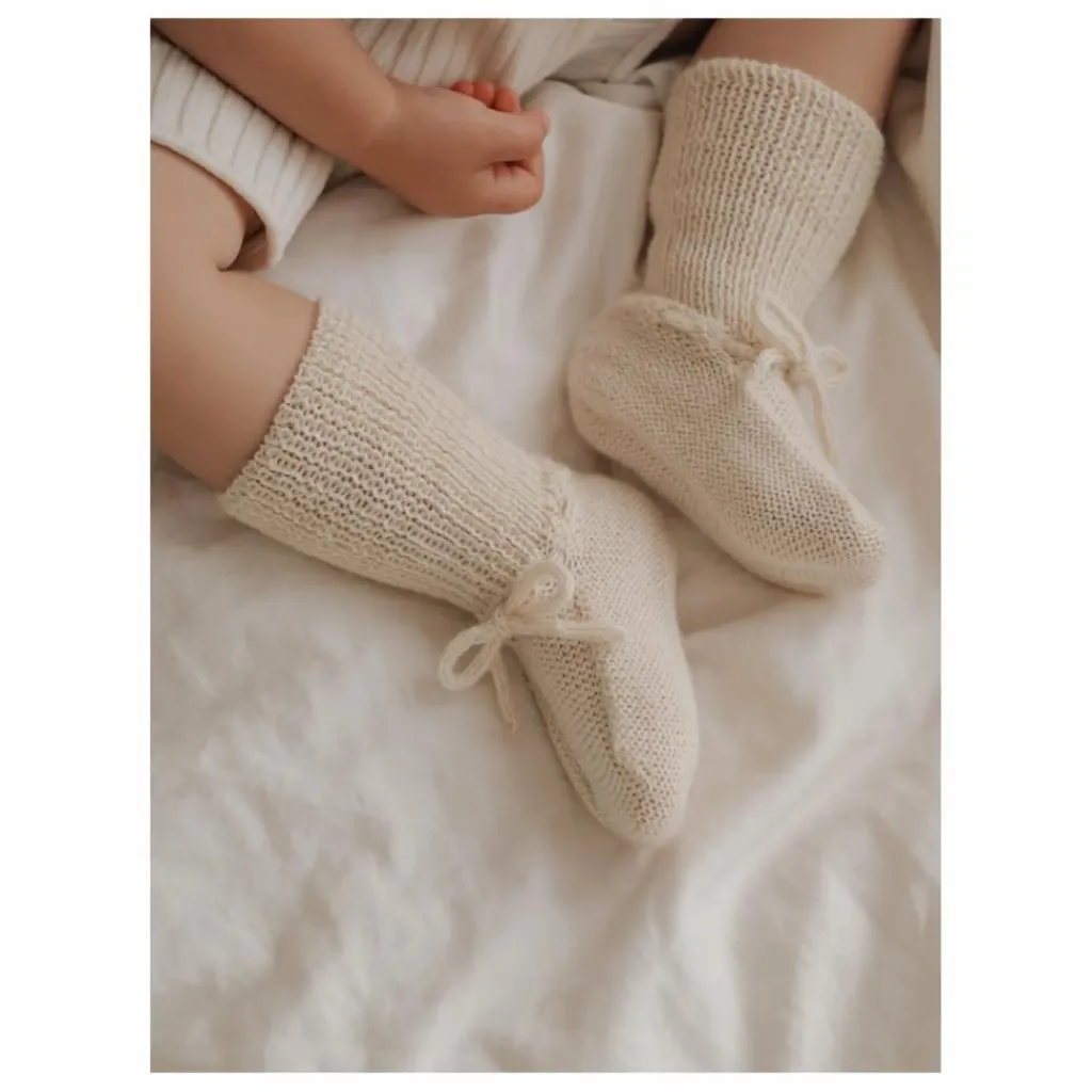 Ces chaussons ultra-doux sont un incontournable intemporel de la garde-robe de bébé. Confectionnés à la main dans les Andes boliviennes, ils sont réalisés avec la laine de baby alpaga la plus fine, renommée pour sa douceur exceptionnelle et sa qualité supérieure. Grâce à leur petit lacet à la cheville, ces chaussons restent bien en place et peuvent se porter dépliés pour offrir une chaleur supplémentaire lors des journées les plus fraîches. Naturellement hypoallergénique et antibactérienne, la laine de baby alpaga est idéale pour la peau délicate des bébés, aidant leur corps à maintenir une température optimale, en été comme en hiver. Associés à nos bonnets assortis, ils forment un cadeau de naissance à la fois pratique et raffiné.