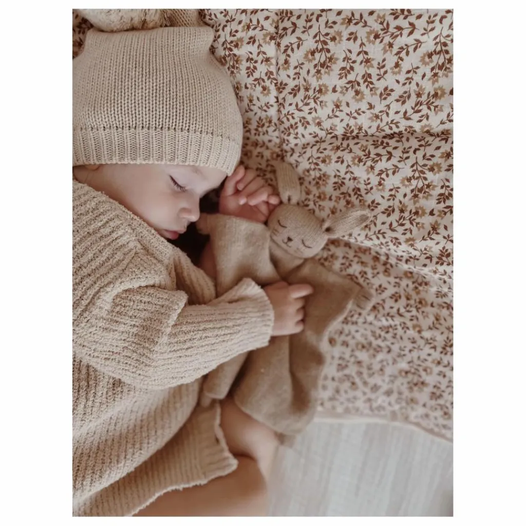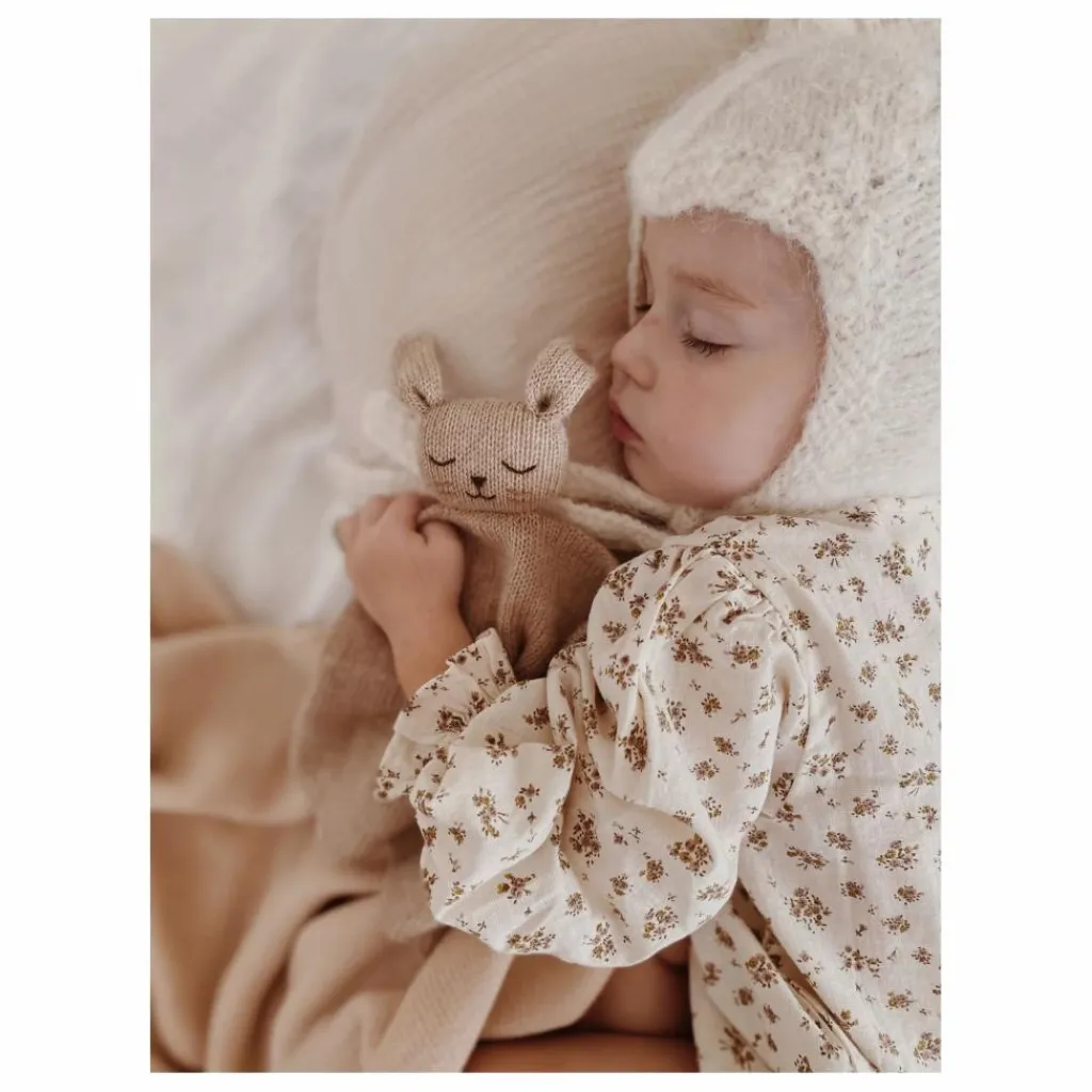 Ce doudou est soigneusement tricoté à la main dans un atelier équitable en Bolivie, valorisant des savoir-faire artisanaux respectueux de l’humain et de l’environnement. Confectionné en pure laine de baby alpaga, une fibre douce, hypoallergénique et respirante, il est parfaitement adapté aux peaux délicates des tout-petits.