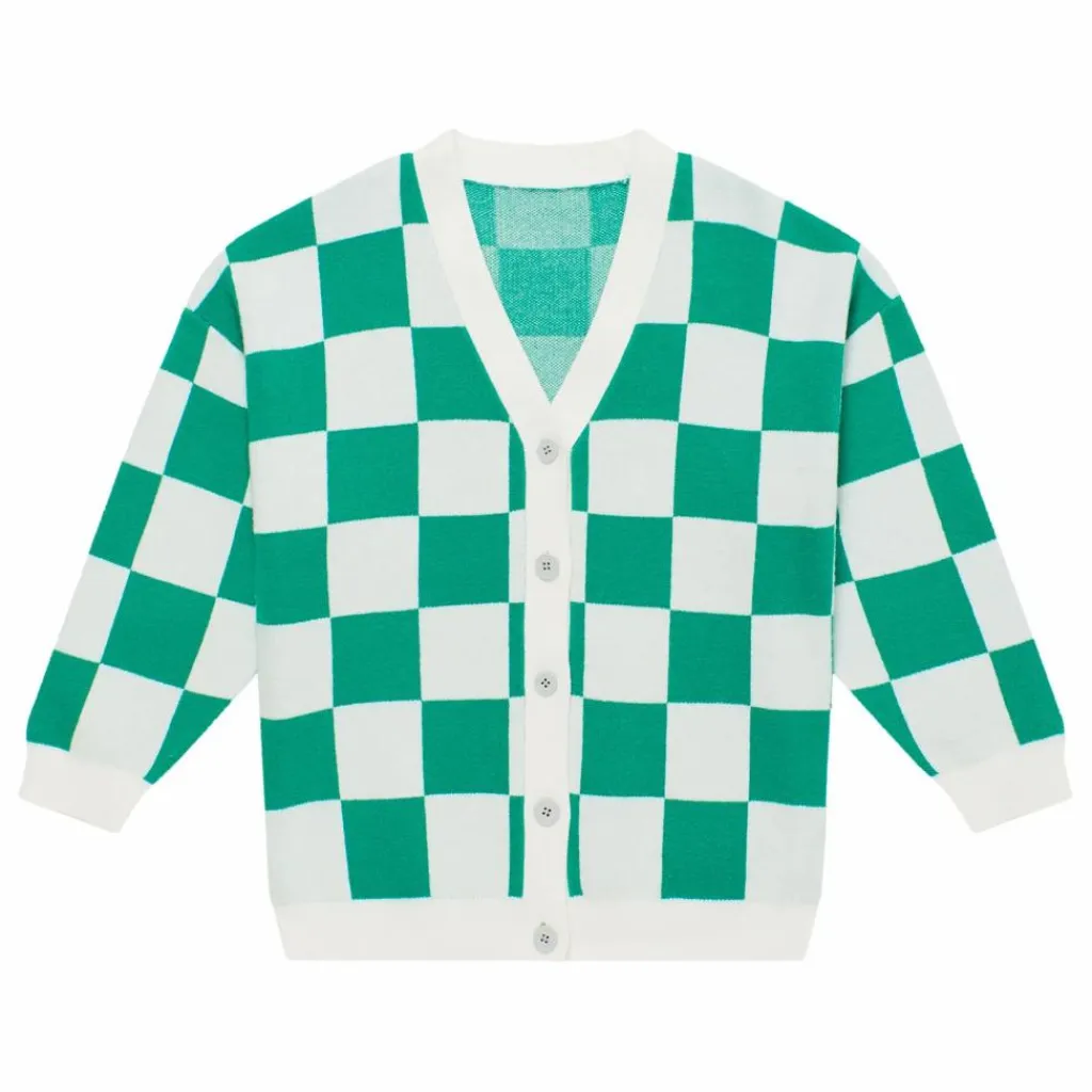 - LE CARDIGAN EN MAILLE DAMA VERT/BLANC EST UN CARDIGAN AVEC NOTRE MOTIF DAMA. OUVERT AVEC DES BOUTONS EN COROZO. 50% Viscose