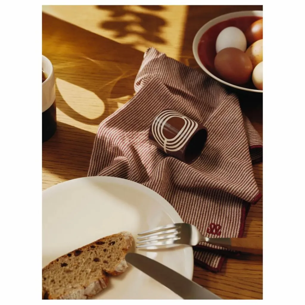 - Tissée, en coton et lin, la serviette de table Tempo est délicatement monogrammée de la signature Maison.