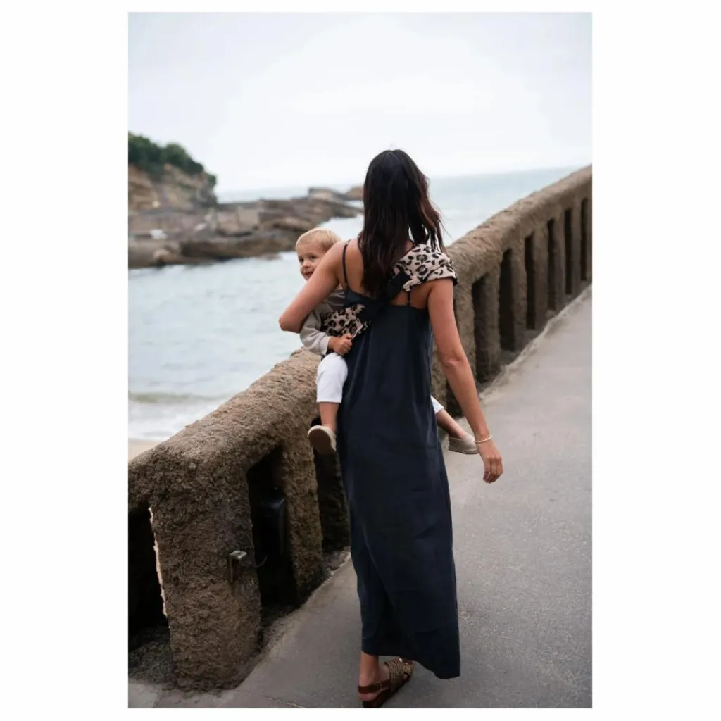 - Une volte déployable sur l’épaule qui apporte une répartition du poids plus équilibrée et un confort absolu au porteur. La conception ergonomique de la volte permet de maintenir votre enfant confortablement tout en évitant les tensions sur le dos et les épaules.
