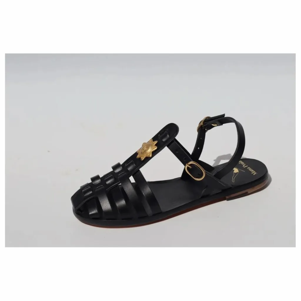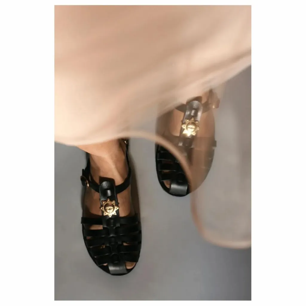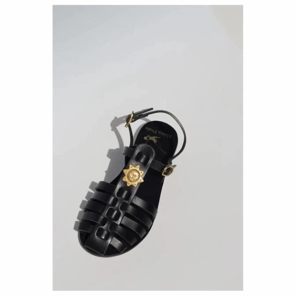 - Les sandales Fisherman en cuir noir « Soleil » affichent un charme irrésistible.