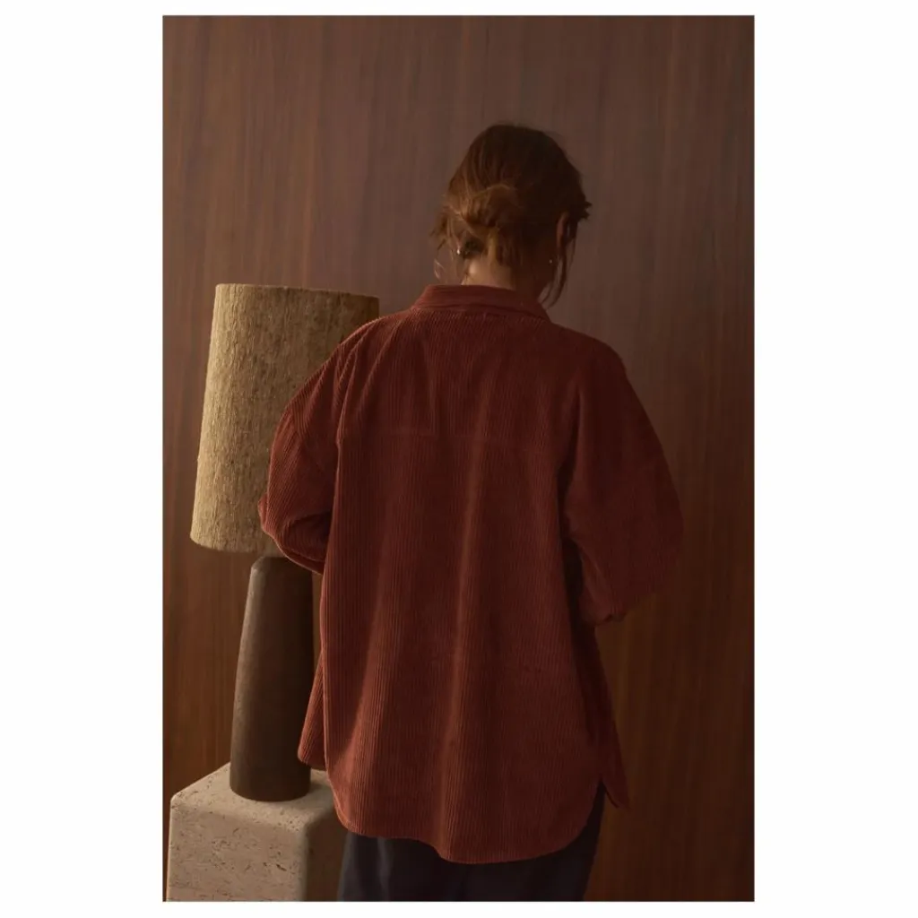 - La chemise Paola revisite le velours côtelé avec une touche contemporaine. Confectionnée en 100 % coton, on aime sa coupe droite et décontractée, son col chemise classique et ses grandes poches plaquées poitrine qui soulignent l’allure worker.