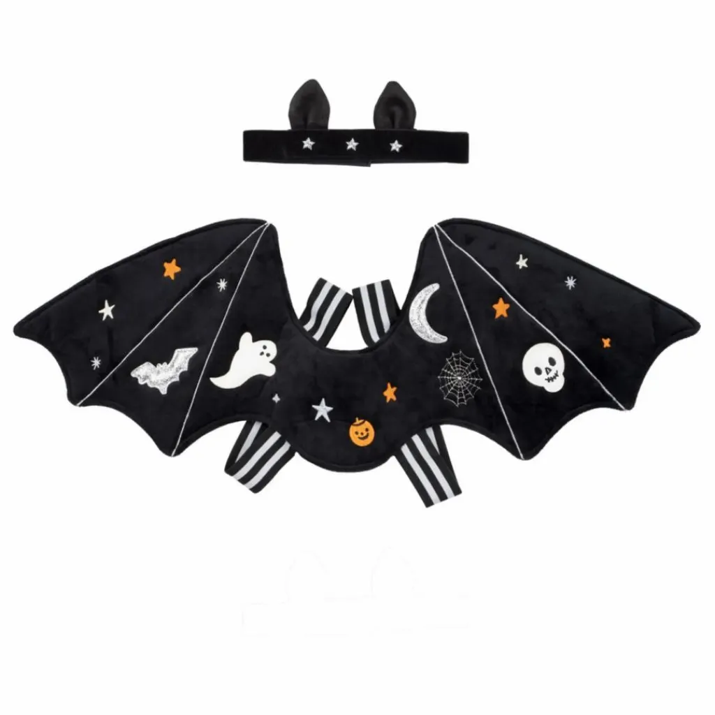 - Laissez vos enfants s’envoler avec ce déguisement de chauve-souris adorable ! Avec ses ailes en velours doux et son serre-tête orné de petites oreilles, il apporte juste ce qu’il faut de style « effrayant mais mignon ». Idéal pour les fêtes d’Halloween, la chasse aux bonbons ou les jeux de déguisement tout au long de l’année. Un fil métallique à l’intérieur des ailes permet de leur donner la forme parfaite, tandis que des détails scintillants en simili cuir et des broderies de personnages d’Halloween ajoutent une touche magique.