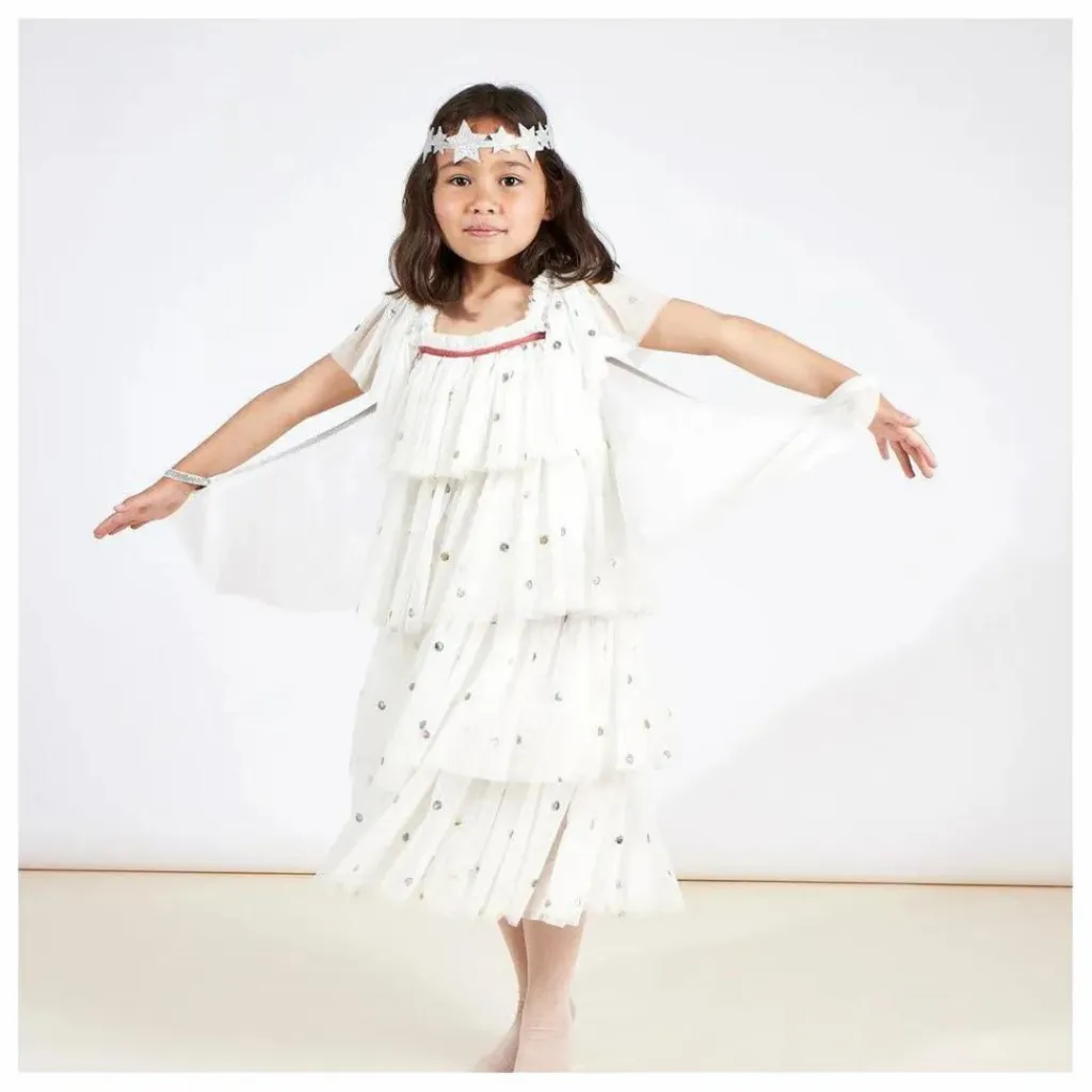 - 1 couronne, 1 paire d’ailes en tulle détachables, 1 robe en tulle
