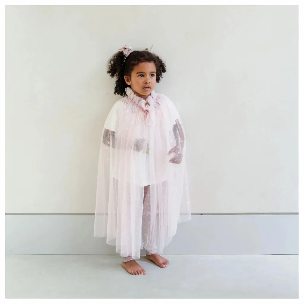 - Scintillez et entrez dans un monde d’enchantement avec notre cape de princesse Shimmer ! Fabriquée dans un tulle rose très doux et parsemée d’étoiles scintillantes, elle est parfaite pour ajouter une touche de charme féerique à n’importe quel déguisement. Associez-la à notre chapeau de princesse ou à notre tutu pour un look complet !