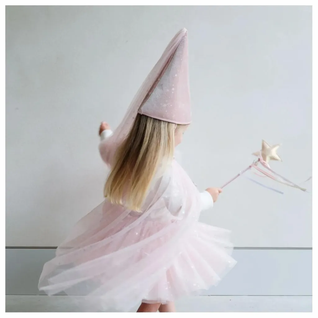 - Entrez dans un monde d’enchantement avec notre chapeau de princesse Shimmer ! Fabriqué en velours rose très doux et parsemé d’étoiles scintillantes, il peut être associé au tutu ou à la cape assortis pour une transformation vraiment royale !