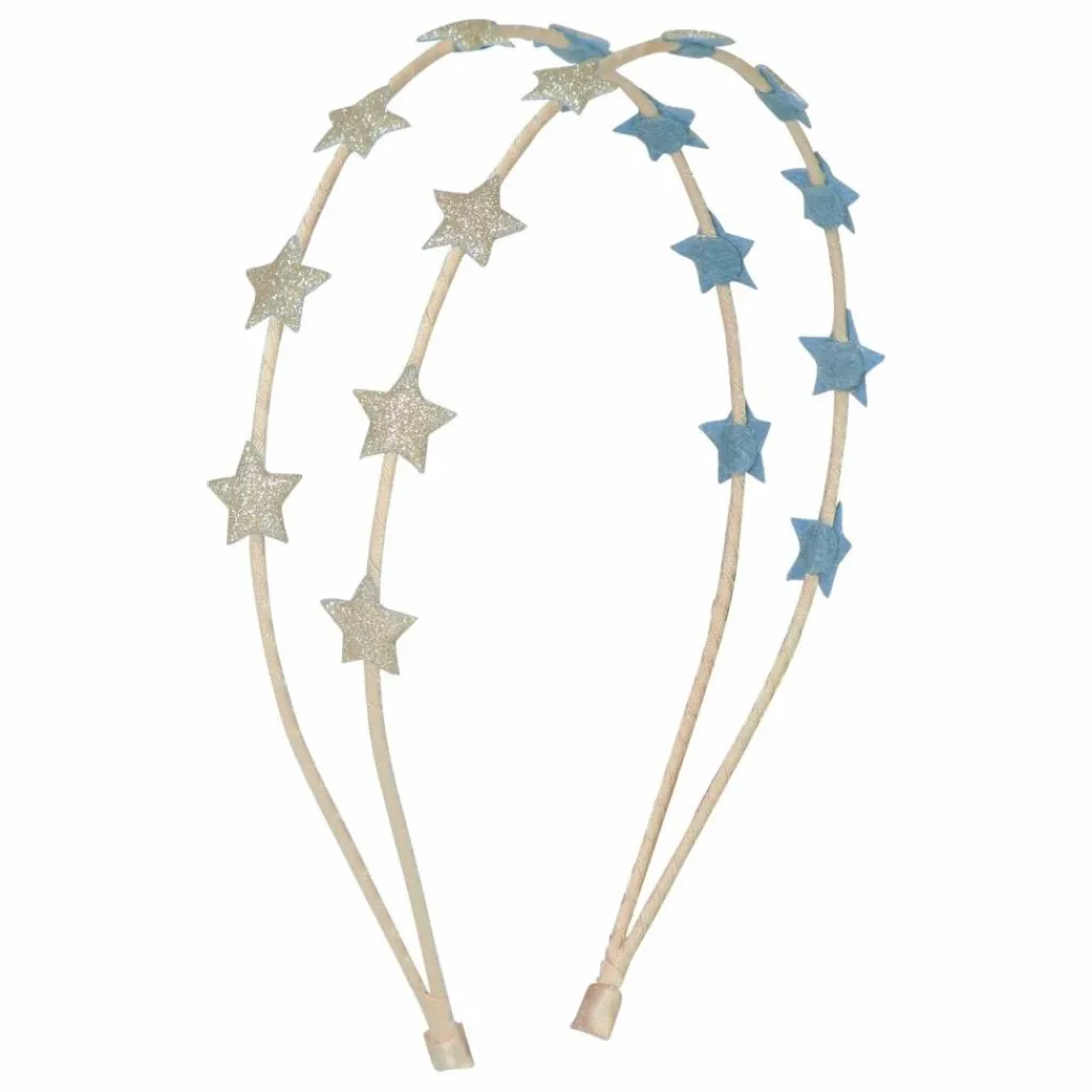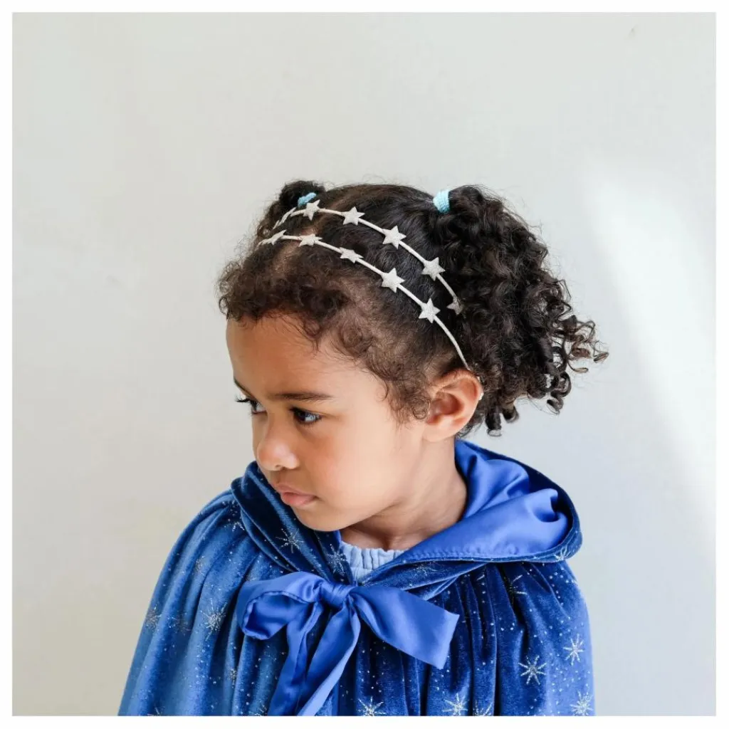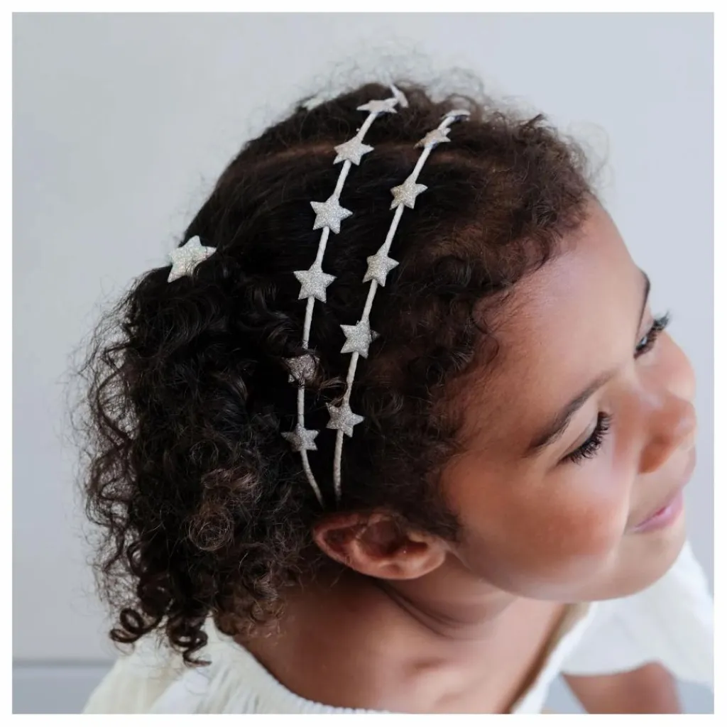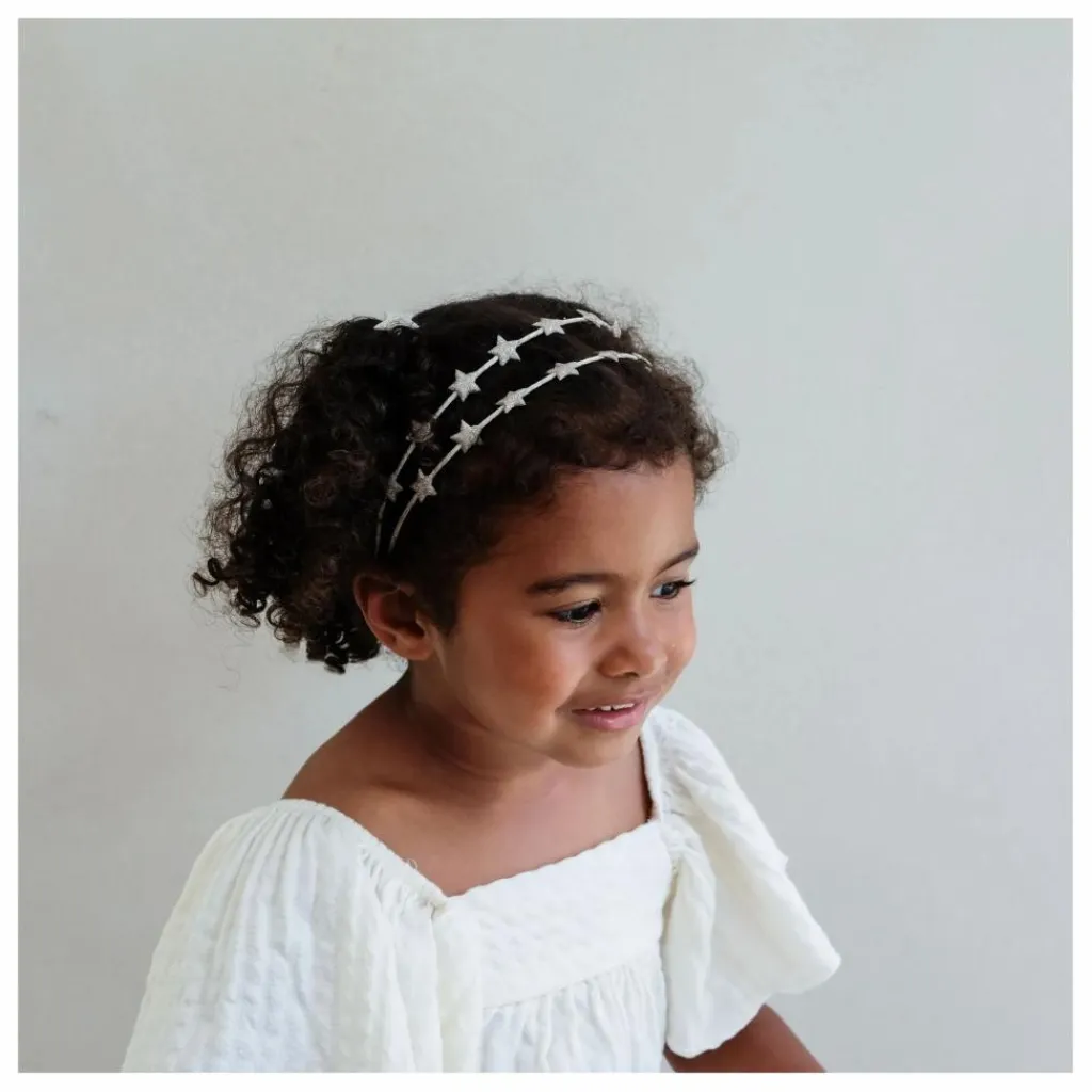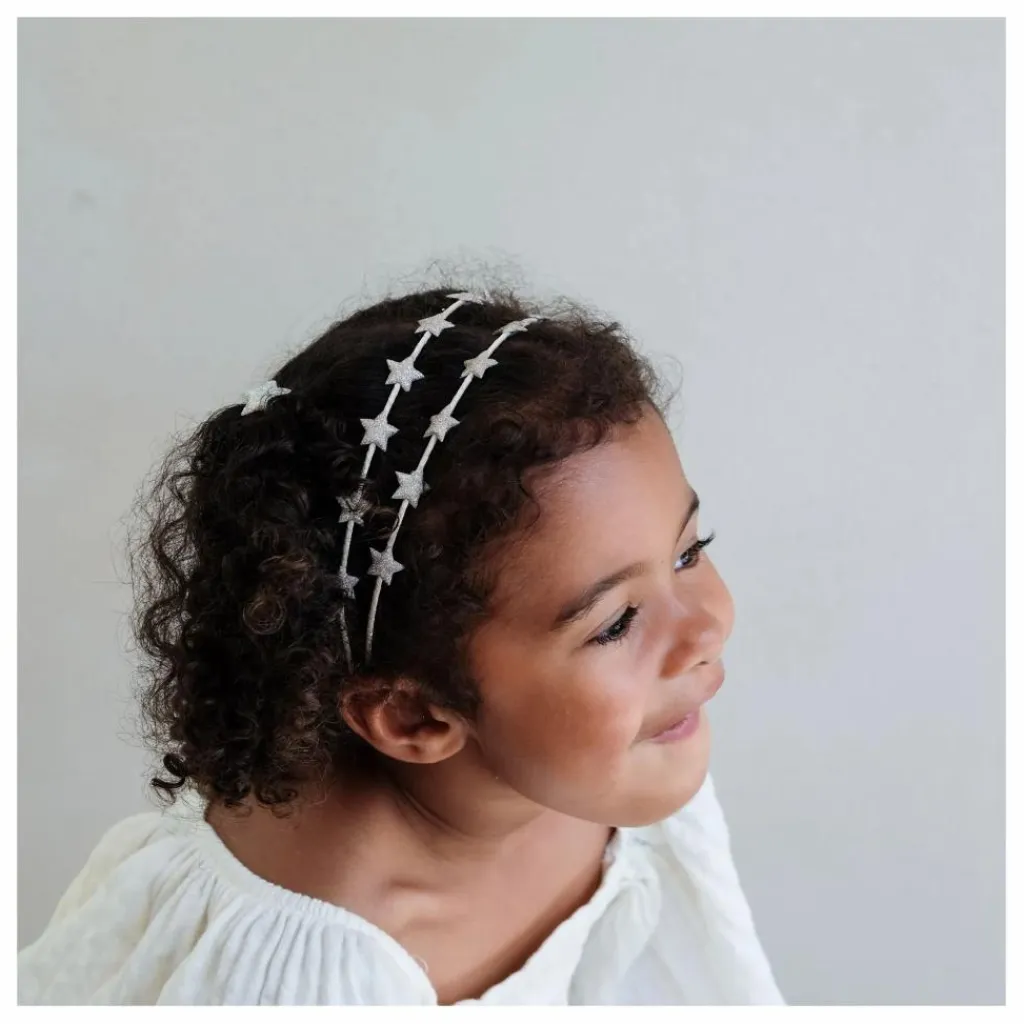 - – Bande Alice adaptée aux enfants de 3 à 10 ans – Deux rangées de rubans ornés d’étoiles matelassées en tissu métallisé doux et pailleté.
