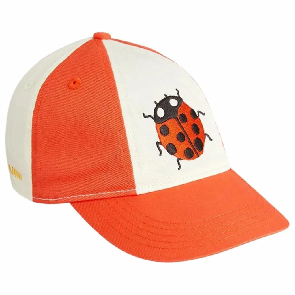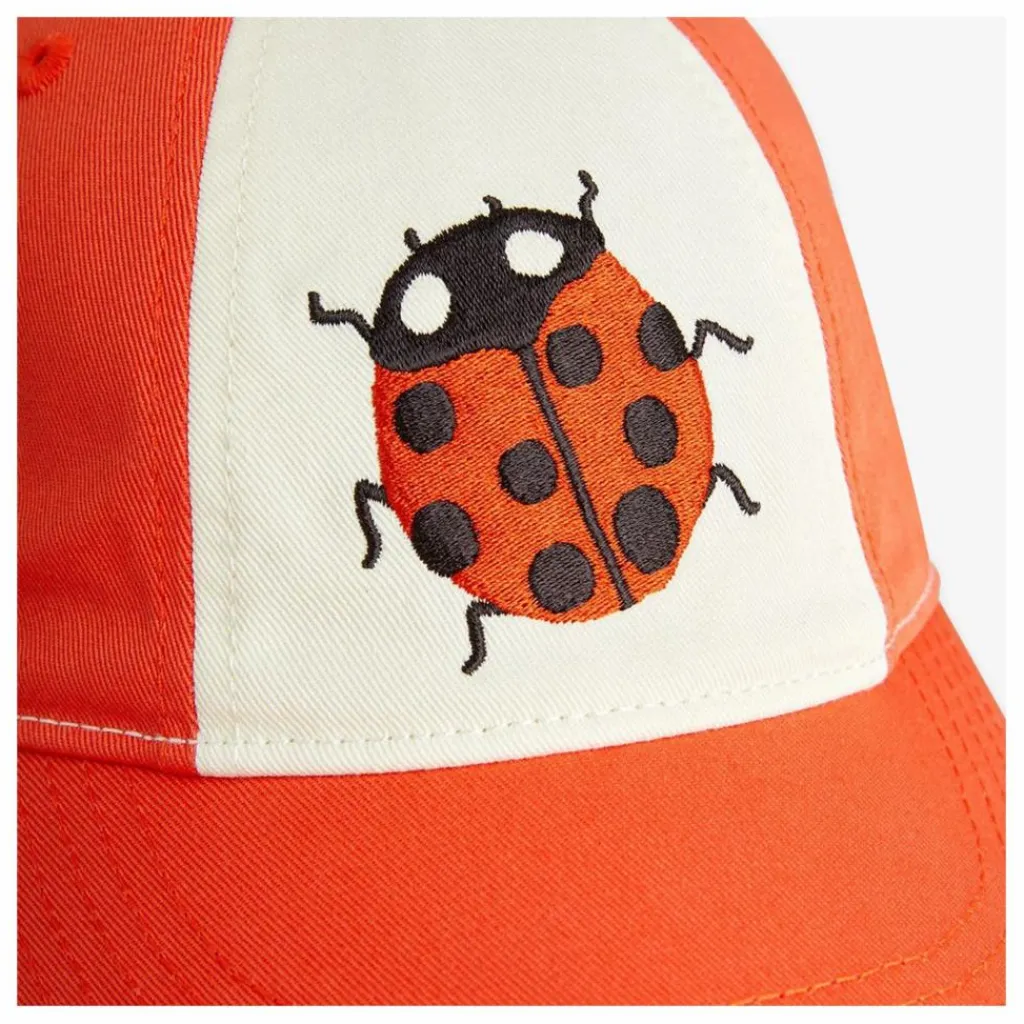 Casquette rouge et blanche ornée d’un écusson brodé représentant une coccinelle, fabriquée en 100 % coton biologique. La casquette est réglable grâce à une boucle métallique à l’arrière pour un ajustement parfait.
