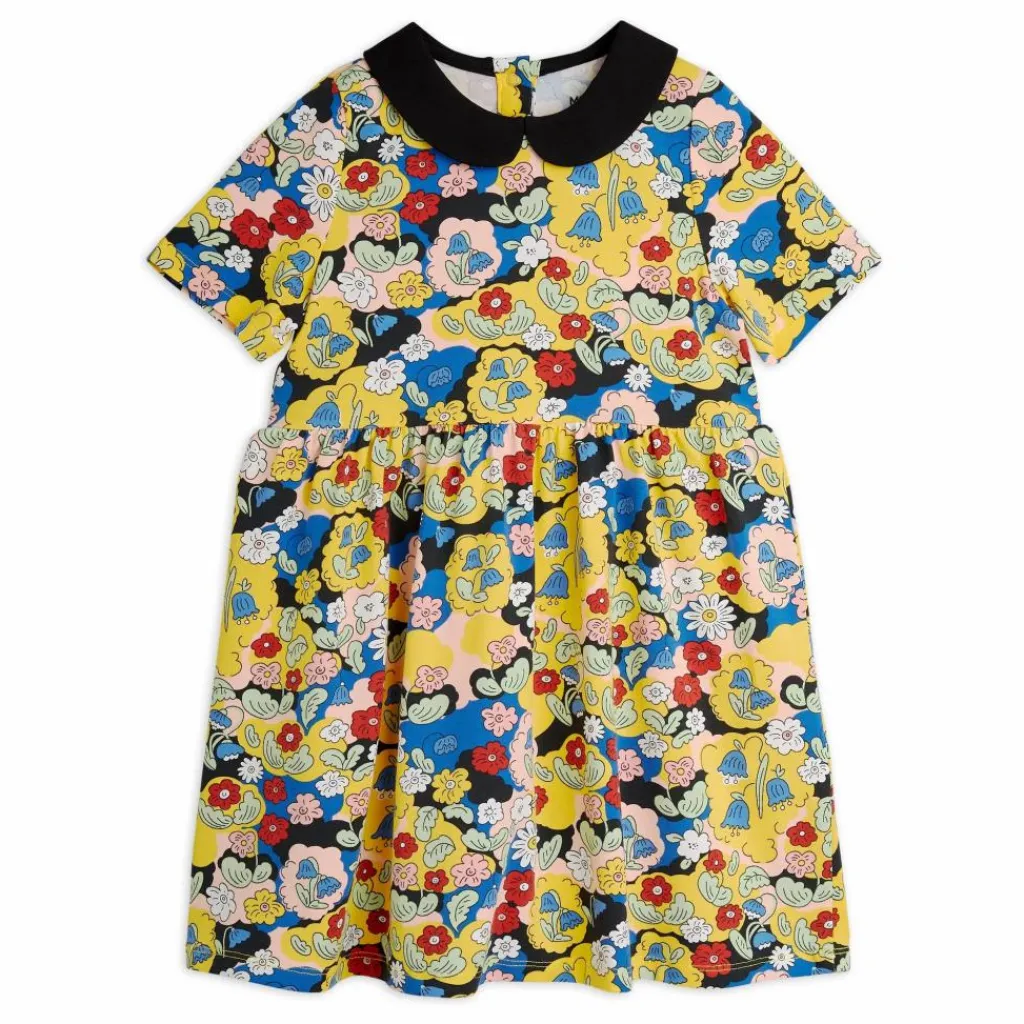 - Robe à manches courtes en coton biologique certifié GOTS avec un soupçon d’élasticité, imprimée de fleurs sur tout le corps. Conçue avec des manches courtes, un col arrondi, une taille haute et une jupe évasée. Décorée de boutons dans le dos pour faciliter l’habillage.