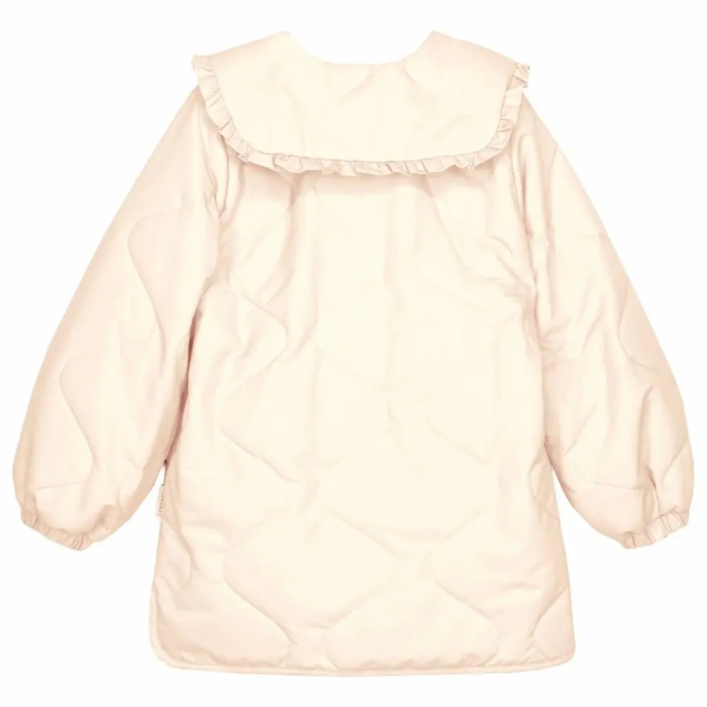 - Faites de la superposition une affaire chic avec cette veste matelassée. Le col oversize apporte une touche de style à la silhouette, complété par un volant féminin et une délicate cravate.