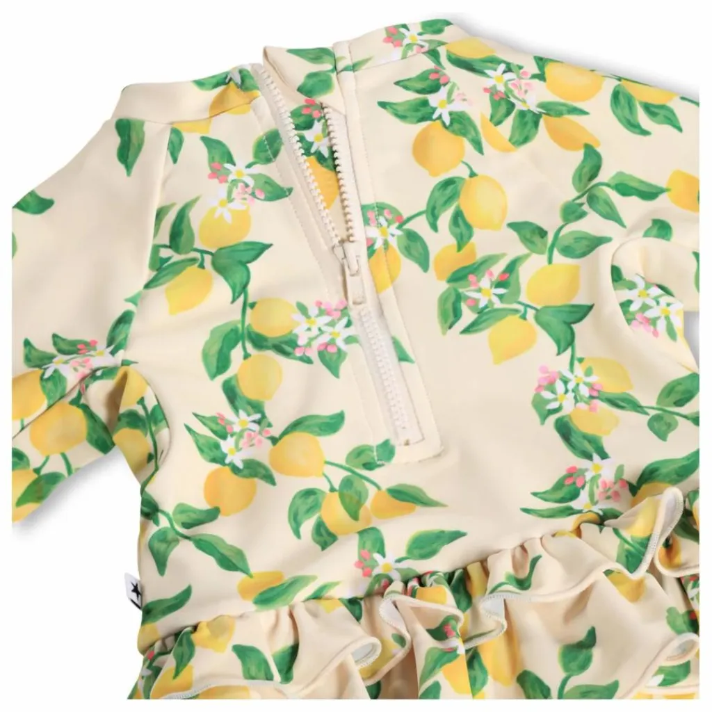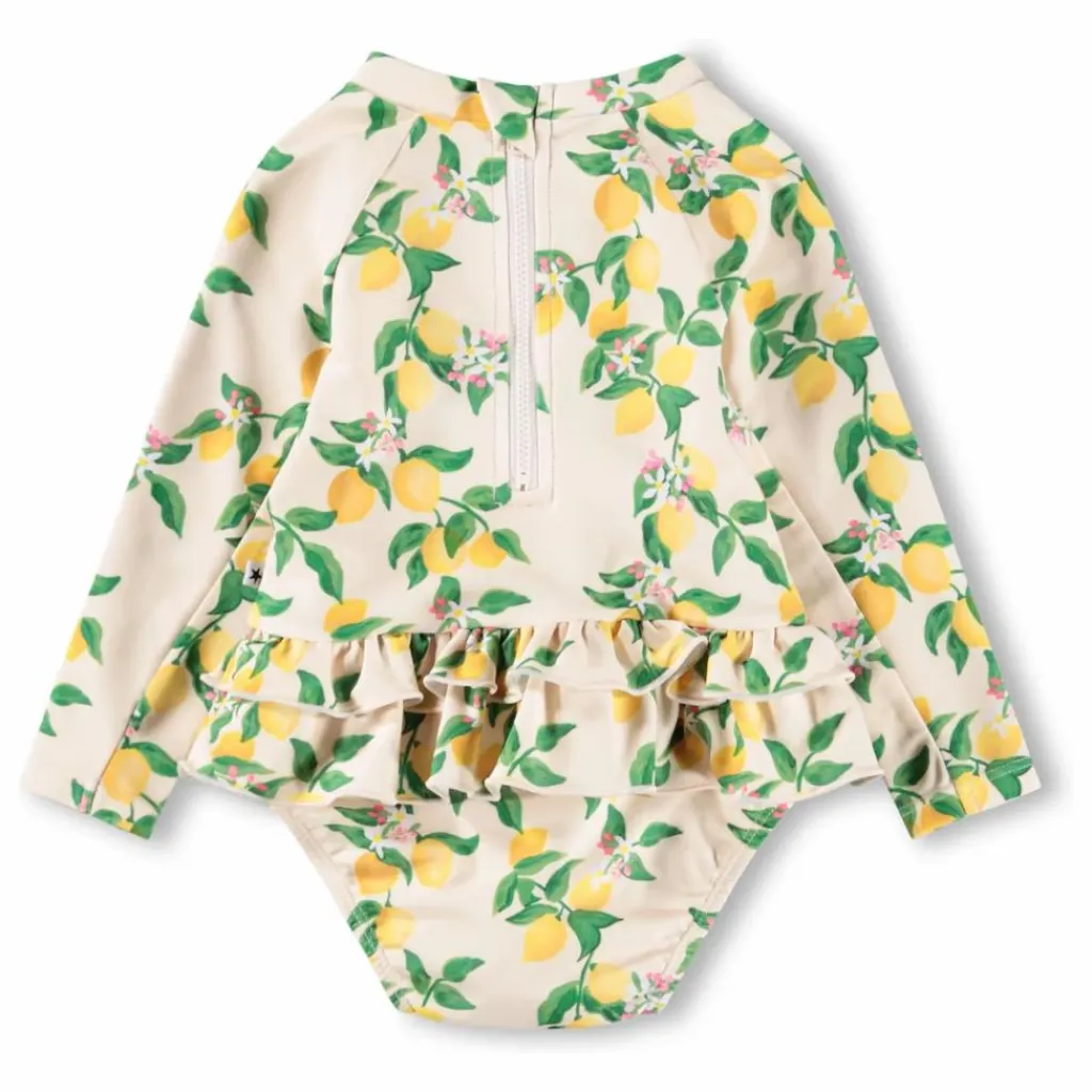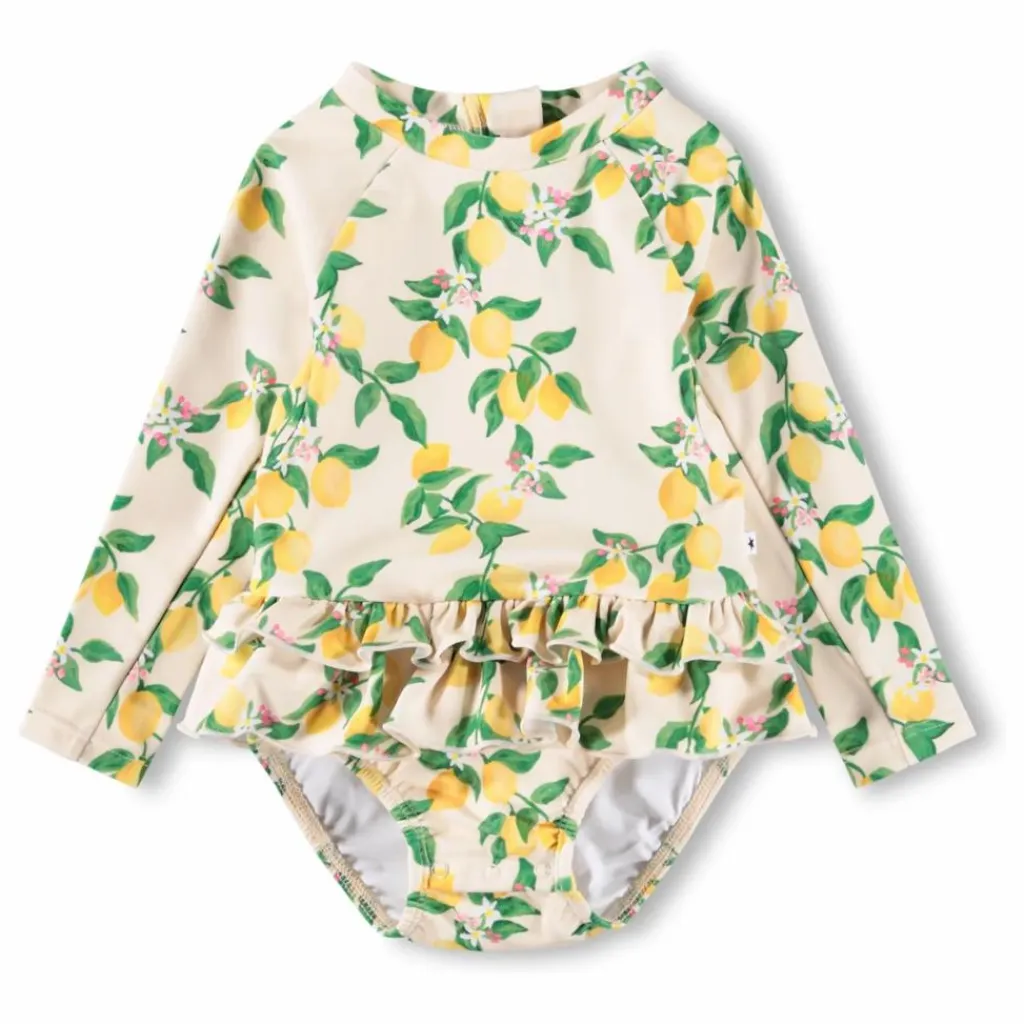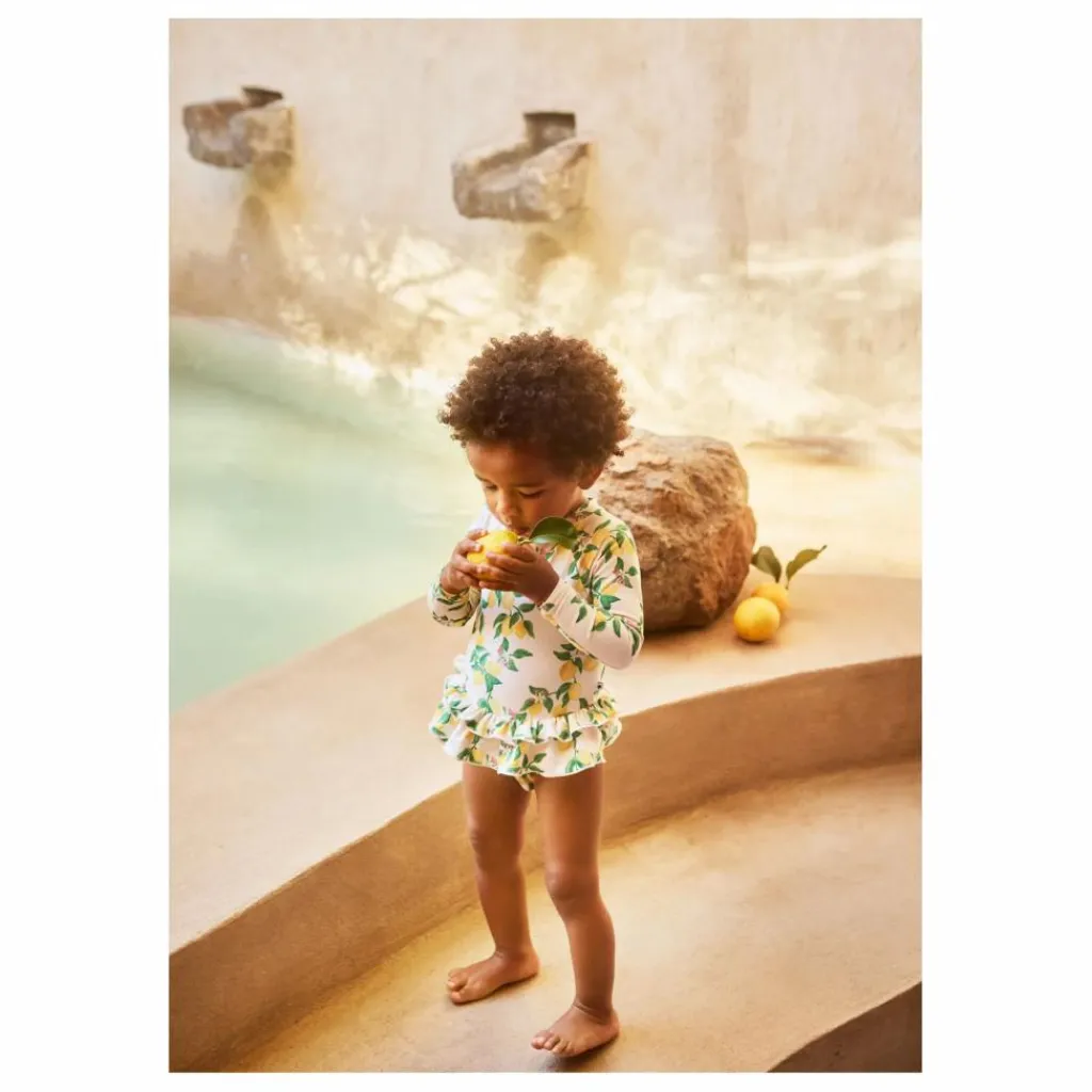 - Ce ravissant maillot de bain pour tout-petits est doté de longues manches raglan, offrant une protection solaire supplémentaire pour les chaudes journées à la plage ou au bord de la piscine. Conçu pour le confort, il est doté d’une fermeture éclair pratique dans le dos et de boutons-pression pour faciliter le changement de couche. Le bas doublé d’un élastique assure un bon maintien, tandis que les charmants volants ajoutent un élément amusant et ludique que les petits adoreront. Parfait pour les aventures estivales.