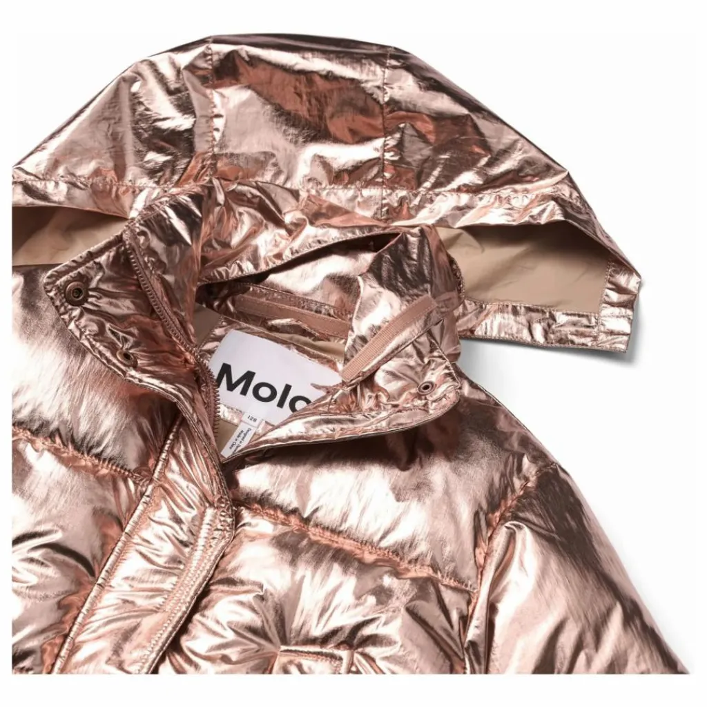 - Cette veste cuivrée de Molo est dotée d’une fermeture à glissière et d’un rabat sur le devant, ainsi que d’un col montant avec capuche intégrée. La veste a des poches sur le devant, des poignets élastiques et au bas, ce qui contribue efficacement à empêcher le vent de s’infiltrer. En outre, la veste est dotée d’un rembourrage en polyester recyclé qui assure la douceur et une isolation thermique optimale.