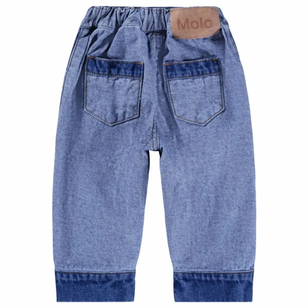 - Ce pantalon bleu de Molo est fabriqué en denim de coton doux et extensible et présente une coupe ample. Il est doté d’une fermeture à bouton et à glissière, de poches pratiques et d’une taille élastique réglable à l’intérieur pour un ajustement parfait.