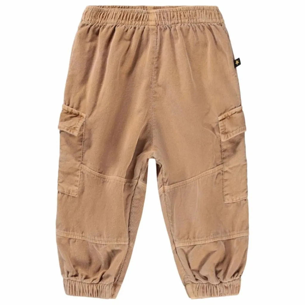 - Ce pantalon cargo marron de Molo est fabriqué en velours de coton biologique doux. Il présente une coupe ample et des poches cargo sur les cuisses, ainsi qu’une taille élastique et des poignets aux chevilles.
