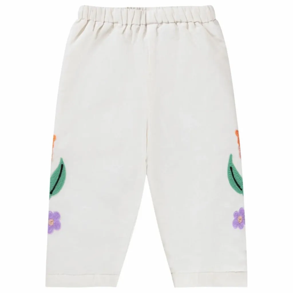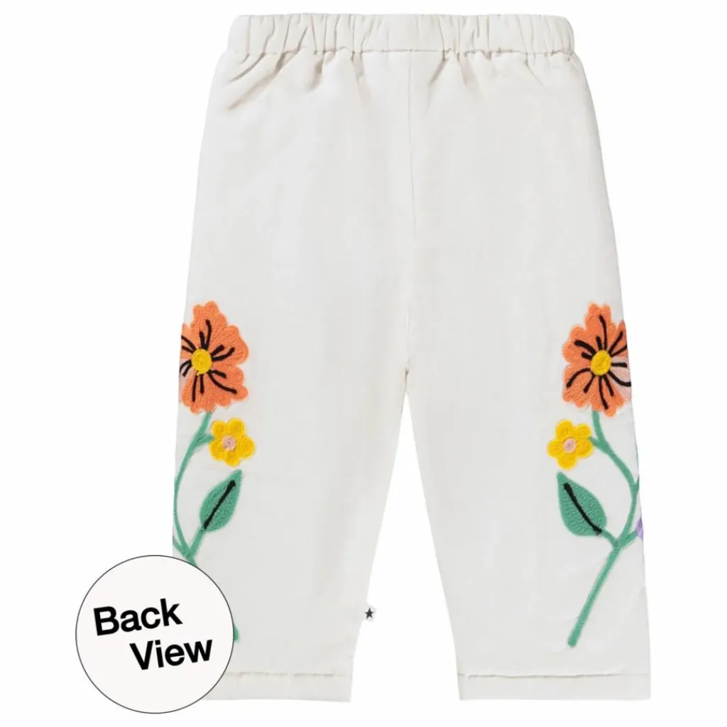 - Ce pantalon blanc de Molo est confectionné en coton doux et présente une taille élastique ainsi qu’une belle broderie de grandes fleurs sur les côtés de la jambe.