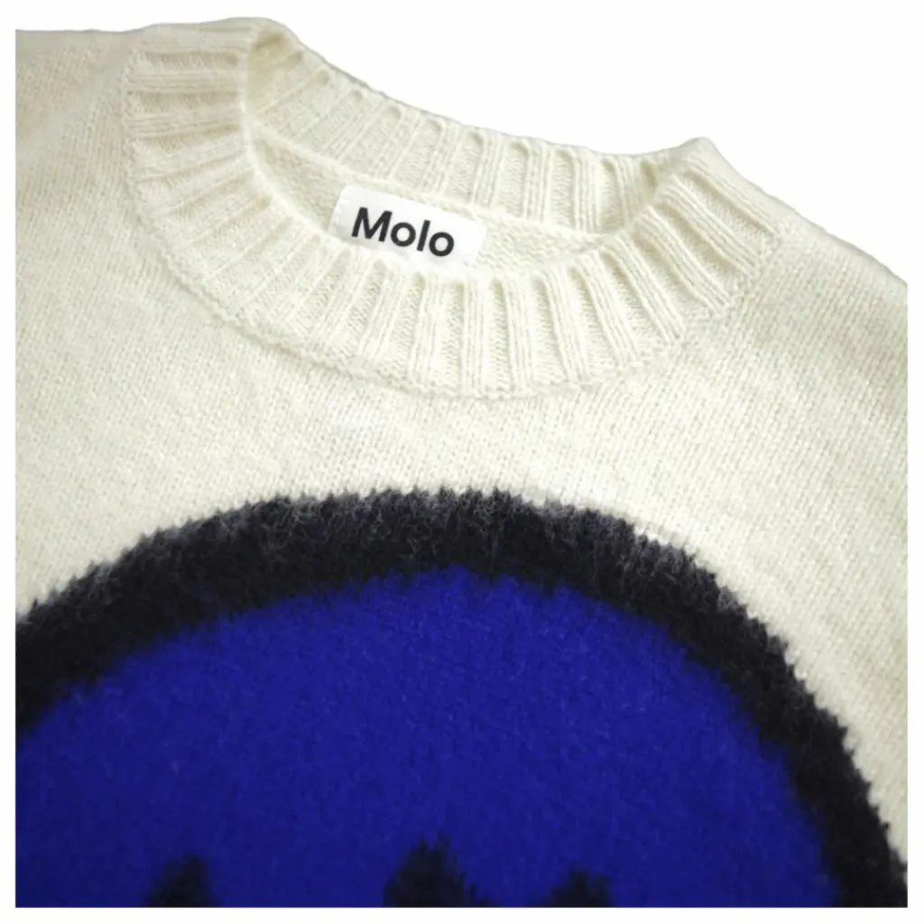 - Ce pull en laine blanc cassé de Molo est orné d’un grand visage bleu souriant sur le devant. Les bords côtelés autour du cou, des manches et de la taille donnent au pull une coupe régulière.