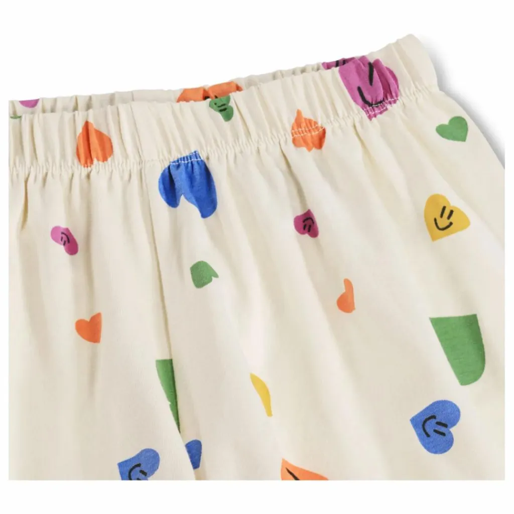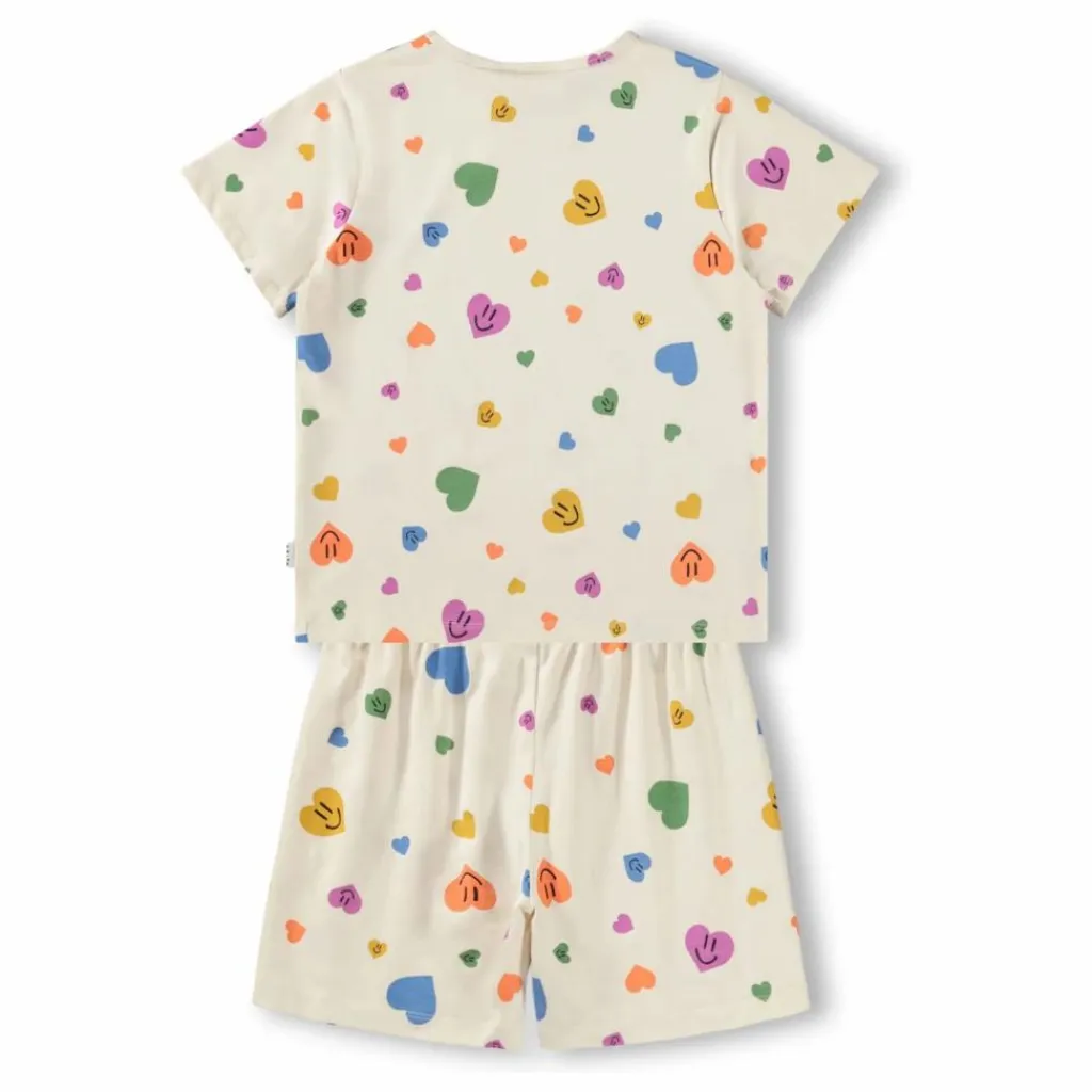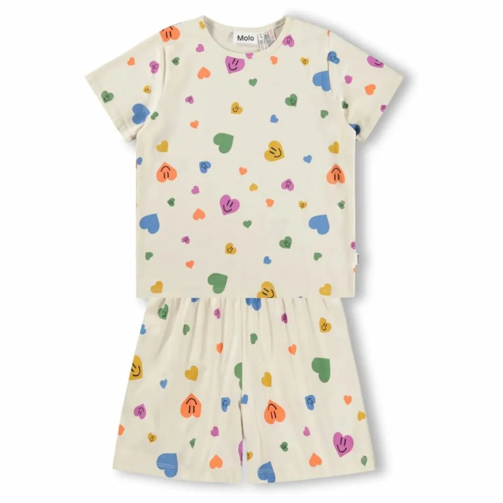 - Cet ensemble deux pièces comprend un t-shirt confortable et ample, complété par un short assorti à taille élastique, pour une aisance de tous les instants. Fabriqués en coton doux et extensible, ces vêtements de nuit douillets sont parfaits pour les nuits chaudes. Orné d’imprimés ludiques de cœurs joyeux, il apporte une touche de gaieté à l’heure du coucher.