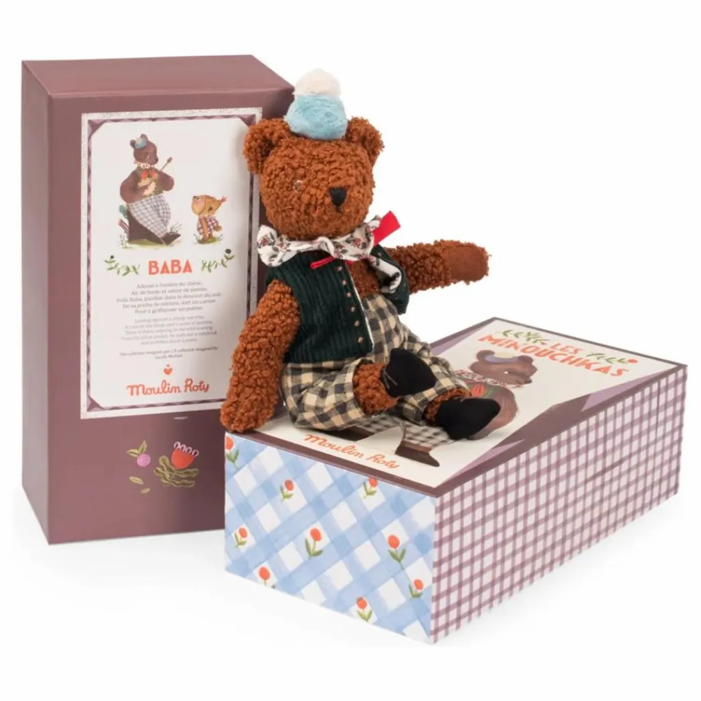- Baba le grand ours est une charmante poupée articulée, imaginée par Lucille Michieli. Il aime jouer du bandjo et le parfum du jasmin ! En compagnie des petits, Baba promet des instants de tendresse et d’aventures inoubliables.