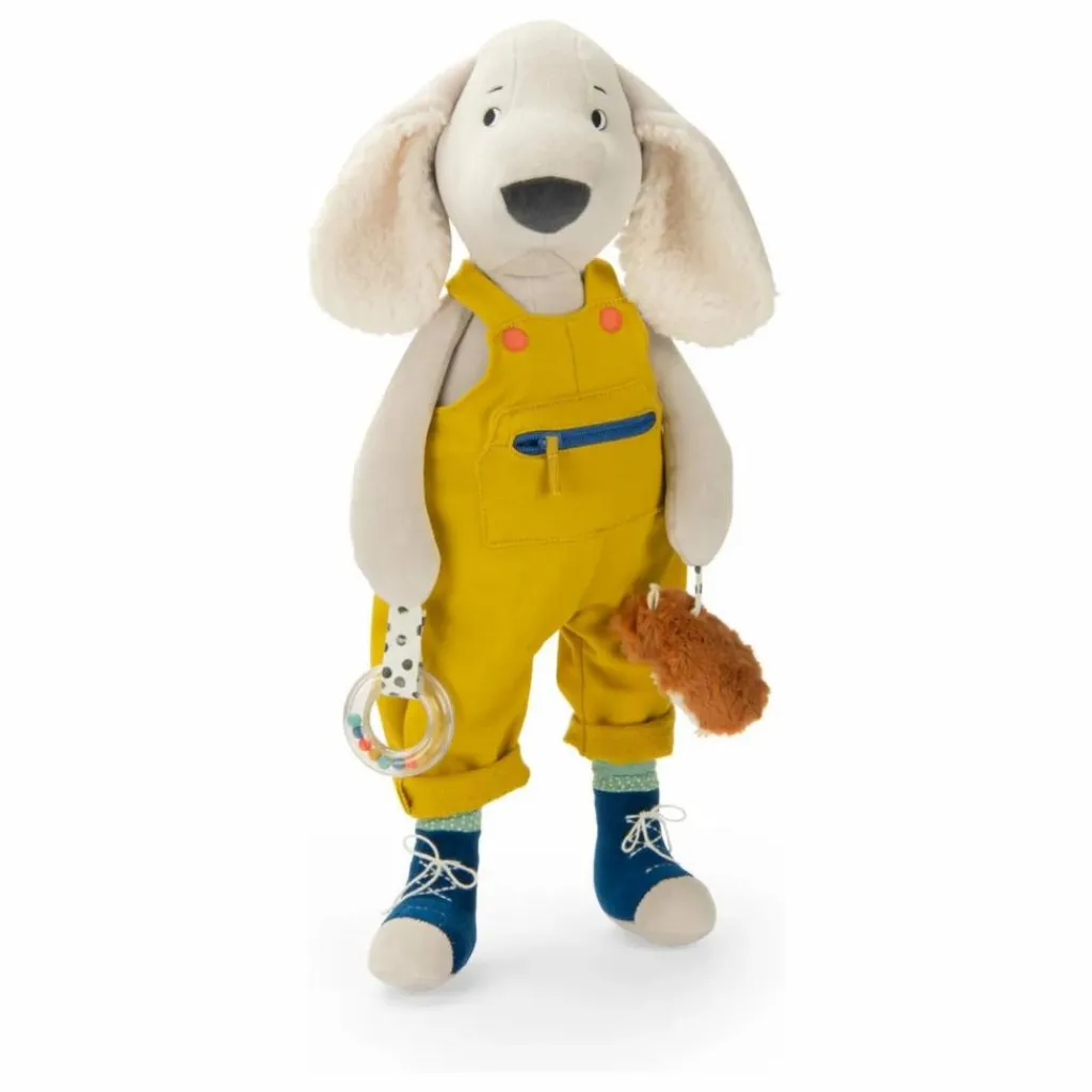 - Pilou le chien malicieux n’attend que les les tout-petits pour jouer avec ses nombreuses activités: anneau à billes colorées, grelots, étiquette à saisir, anneau de dentition et même le chouette cacahuète à câliner!