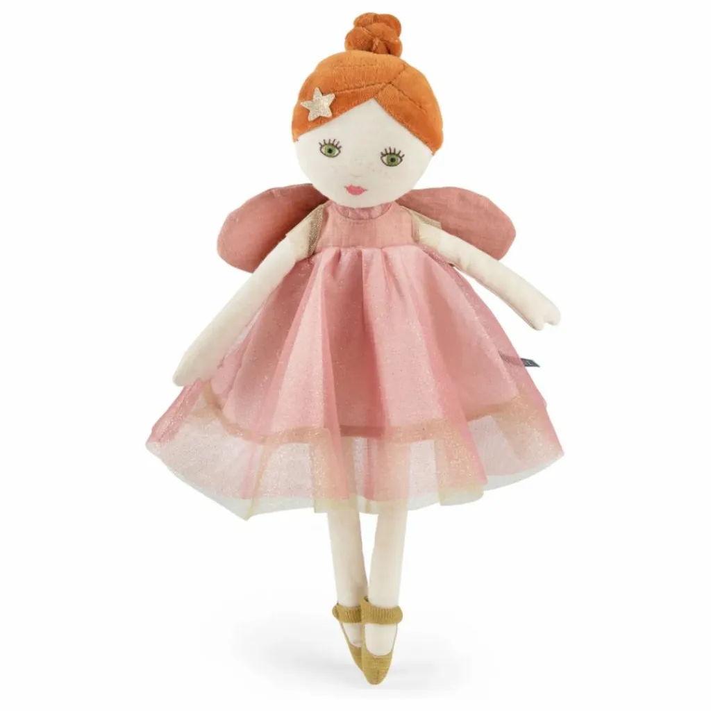 - Au visage délicat brodé et sérigraphié, coiffée d’un chignon de velours parée d’une jolie étoile, Vivianne la fée qui illumine les rêves, est vêtue d’une robe rose avec tulle pailleté couleur or et ailes de fée dans le dos et de petits chaussons brillants.
