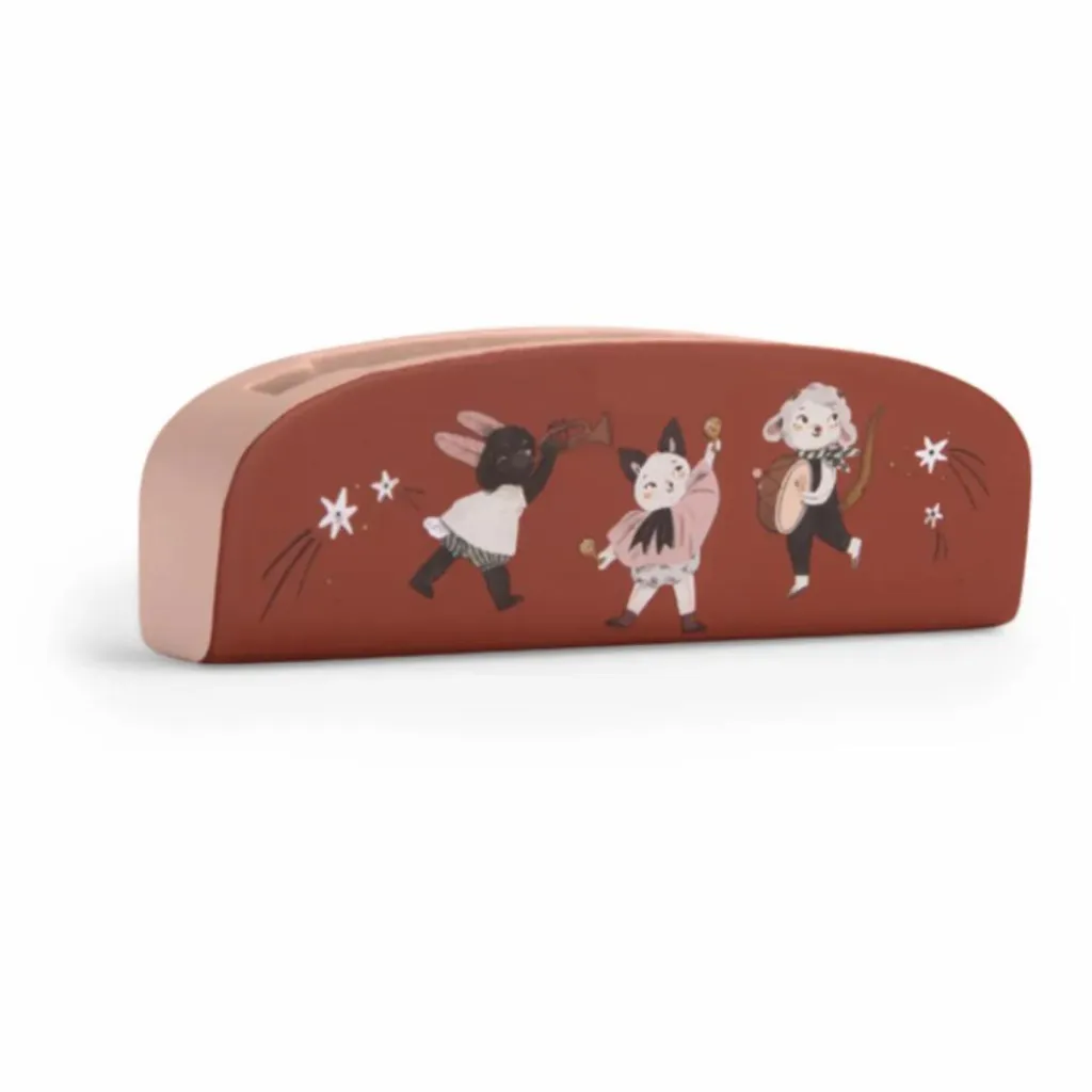 Pour les petits musiciens en herbe ! Voici un harmonica en bois peint, parfait pour les premières initiations à la musique. Il est décoré avec les illustrations poétiques de la collection « Après la pluie », ajoutant ainsi une touche de magie à cet instrument. De taille de poche, il peut être emporté partout, permettant ainsi à l’enfant de pratiquer et de jouer de la musique où qu’il aille.