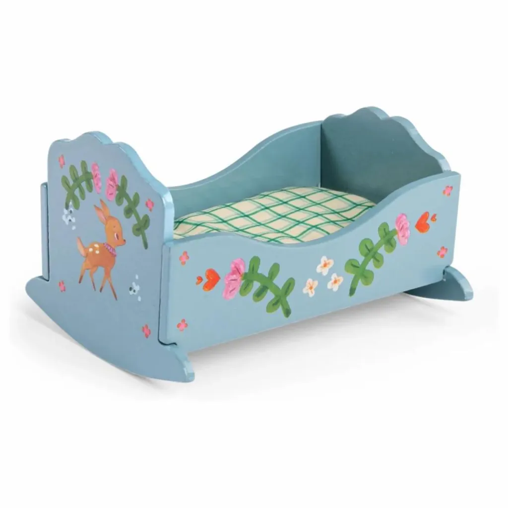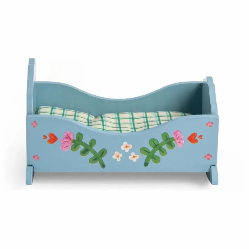 - Chuuut.. petit Emile s’endort, bercé tout doucement à la lueur de la lune. Berceau en bois illustré avec son matelas à carreaux. Personnages vendus séparément.