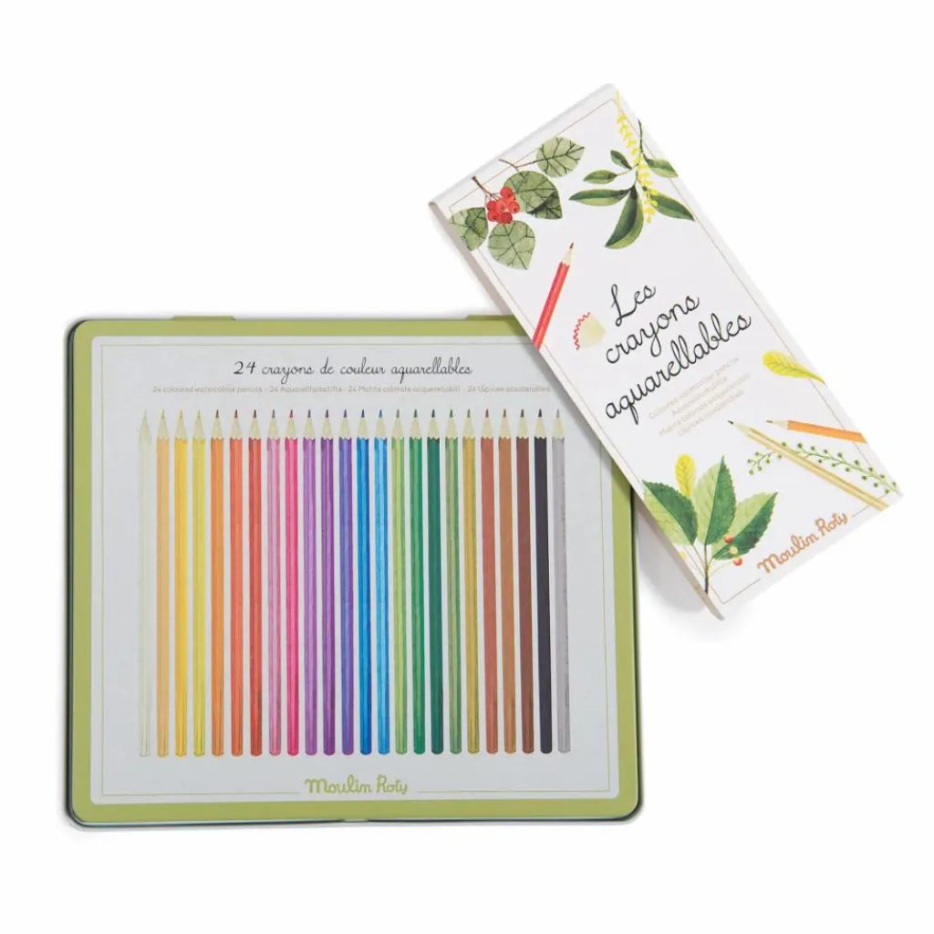 Ces crayons aux couleurs vives peuvent être utilisés de façon classique ou en les trempant dans l’eau pour obtenir un effet aquarelle.