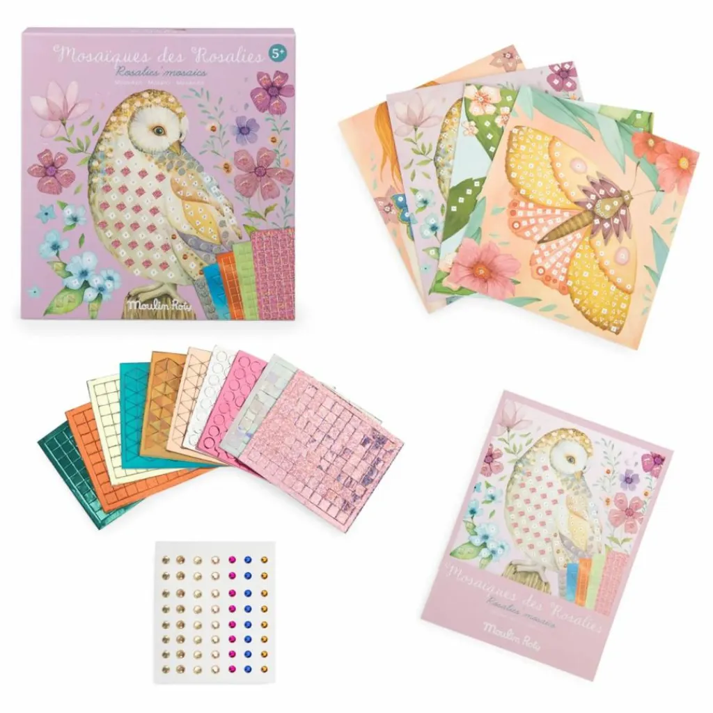 - Grâce aux planches mosaïque adhésives, décorez le monde doux et poétique des Rosalies. Une activité ludique et créative à faire seul ou à plusieurs. Ce coffret comprend 5 cartes illustrées, 10 planches de mosaïque et 1 planche de strass.