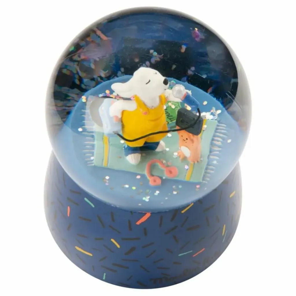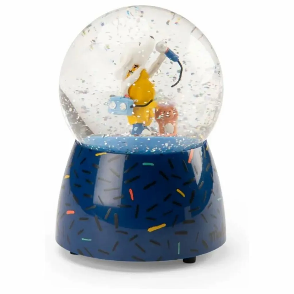- Boule à neige musicale représentant Pilou en plein karaoké pour amuser la galerie ! En plus de décorer sa chambre, une jolie mélodie viendra bercer les plus petits au moment du coucher.