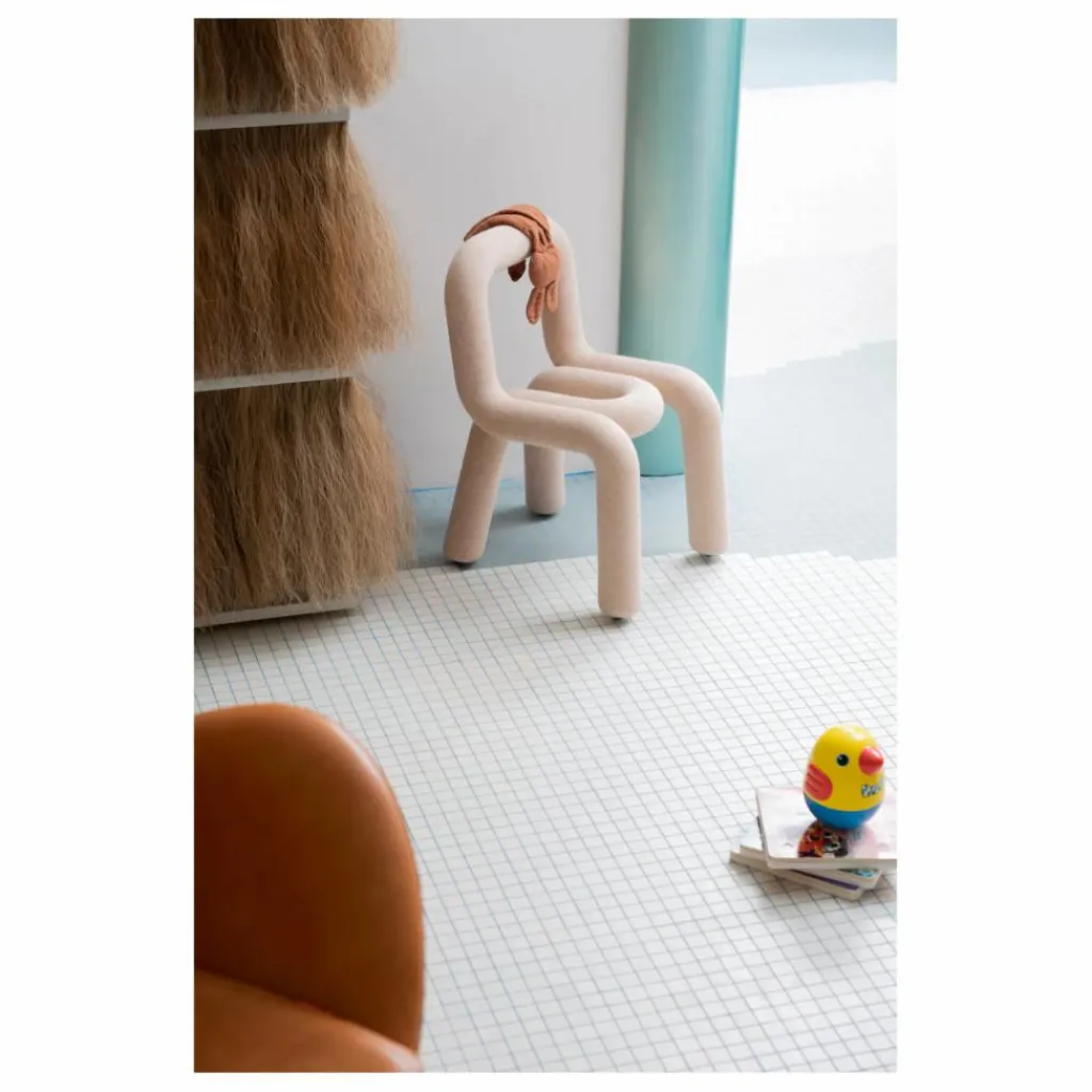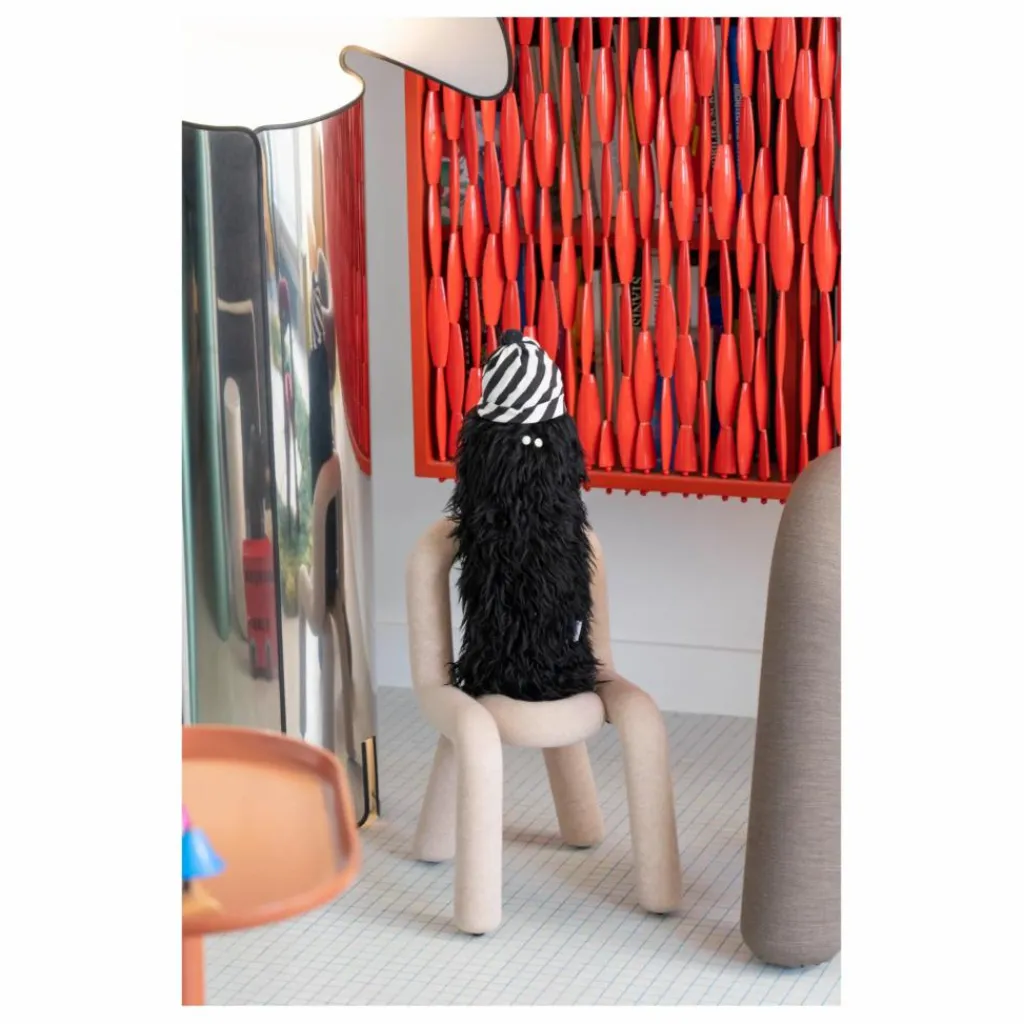 Création du collectif Big Game, la chaise bold est inspirée de la tradition de la chaise avec tube d’acier habituellement simplement utilisé pour le piètement. Ici tout en tube d’acier, la chaise est épaissie par un effet de rembourrage en mousse qui lui apporte un confort extrême. Ludique et graphique, elle se compose de deux parties tubulaires simplement imbriquées l’une dans l’autre, apportant un style à la fois épuré et fantasque.