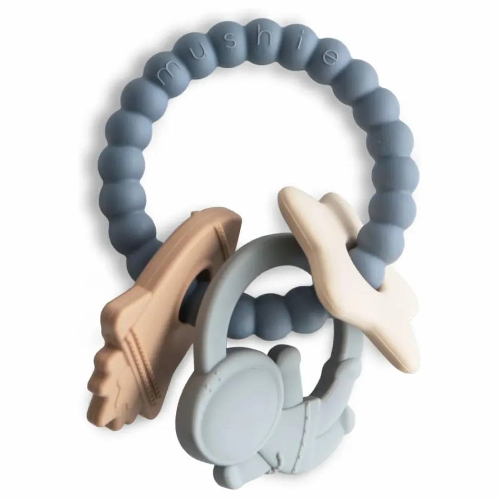Faites découvrir à votre bébé notre anneau de dentition spatial, conçu pour offrir confort, soutien et apaisement. Fabriqué à 100 % en silicone de qualité alimentaire, ce matériau doux et durable répond au besoin naturel de mâcher de bébé, grâce aux formes texturées de lune et d’étoile sur le pourtour de l’anneau. Les breloques d’astronaute, d’étoile et de fusée offrent des possibilités de jeu extraordinaires, stimulant les sens des tout-petits tout en développant leur sensorialité.
