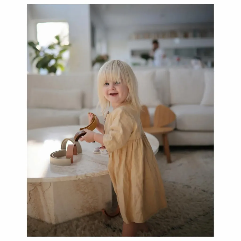 Inspiré par le skywalk arc-en-ciel à Aarhus, au Danemark, ce jouet ludique et design permettra aux tout-petits de trier, empiler et jouer avec ce bel ensemble aux couleurs douces.