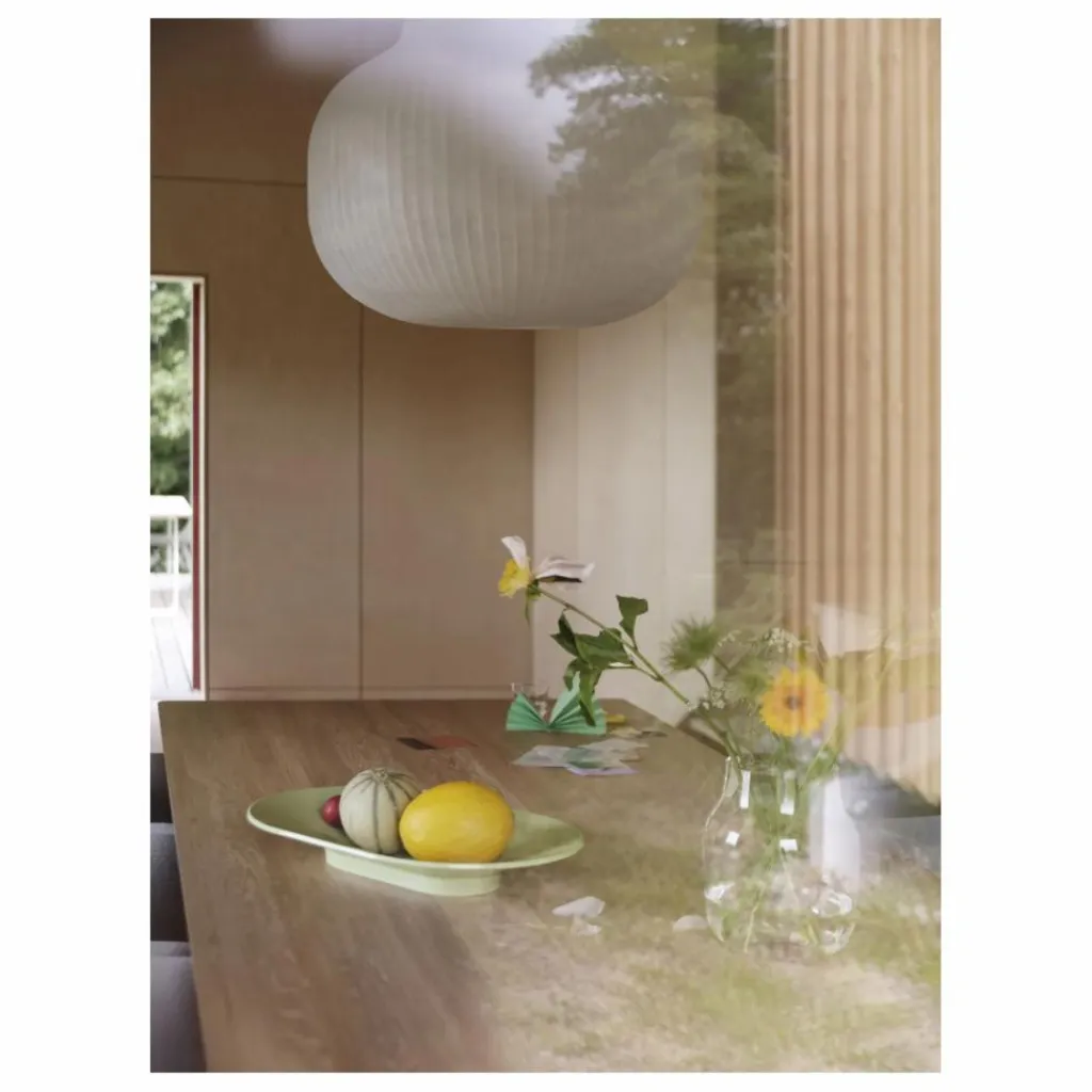 Le plat Mere est une pièce maîtresse sculpturale qui s’intègre parfaitement dans un décor de table ou un espace, qu’il soit utilisé ou non. Sa forme caractéristique est à la fois simple et ingénieuse, puisqu’une ligne au milieu se replie sur les côtés pour former un bol. Surélevé par un pied discret, il semble flotter.