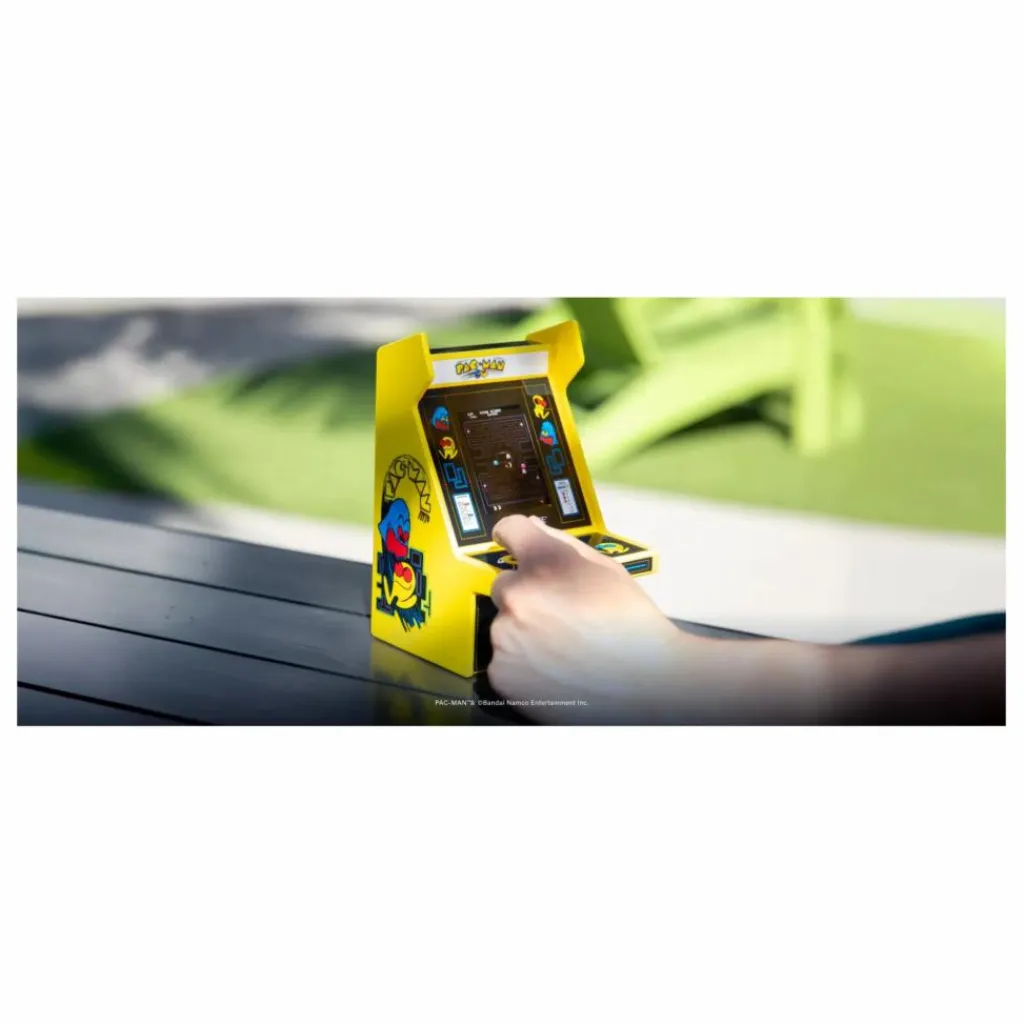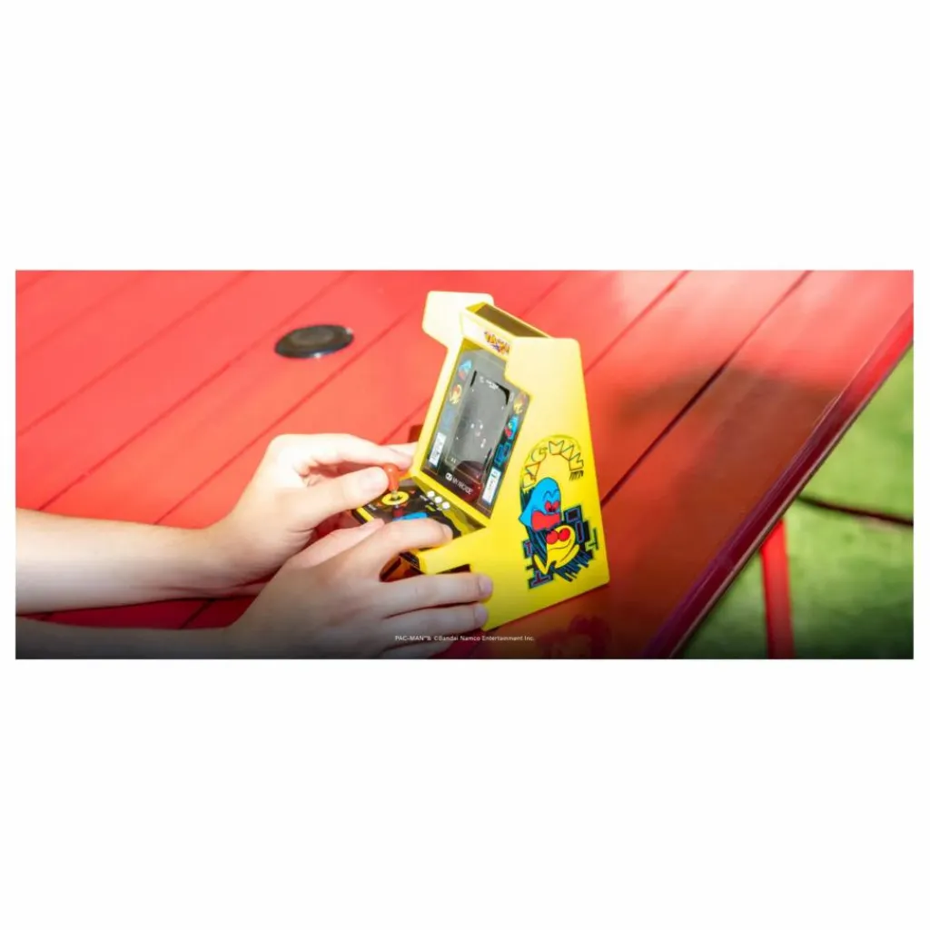 - Écran vertical couleur haute résolution de 2,75 pouces- Illustration inspirée de la console d’arcade originale de PAC-MAN- Alimenté par 4 piles AA (non incluses) ou par un câble USB-C® (non inclus)- Haut-parleur intégré avec contrôle du volume- Port pour casque de 3,5 mm pour connecter vos écouteurs- Luminosité de l’écran réglable