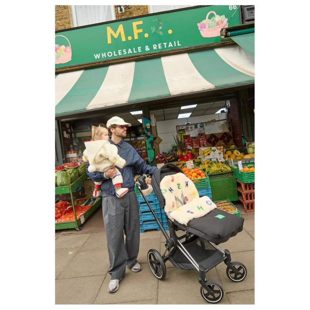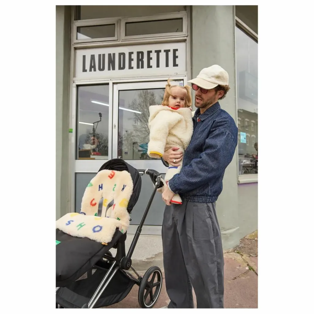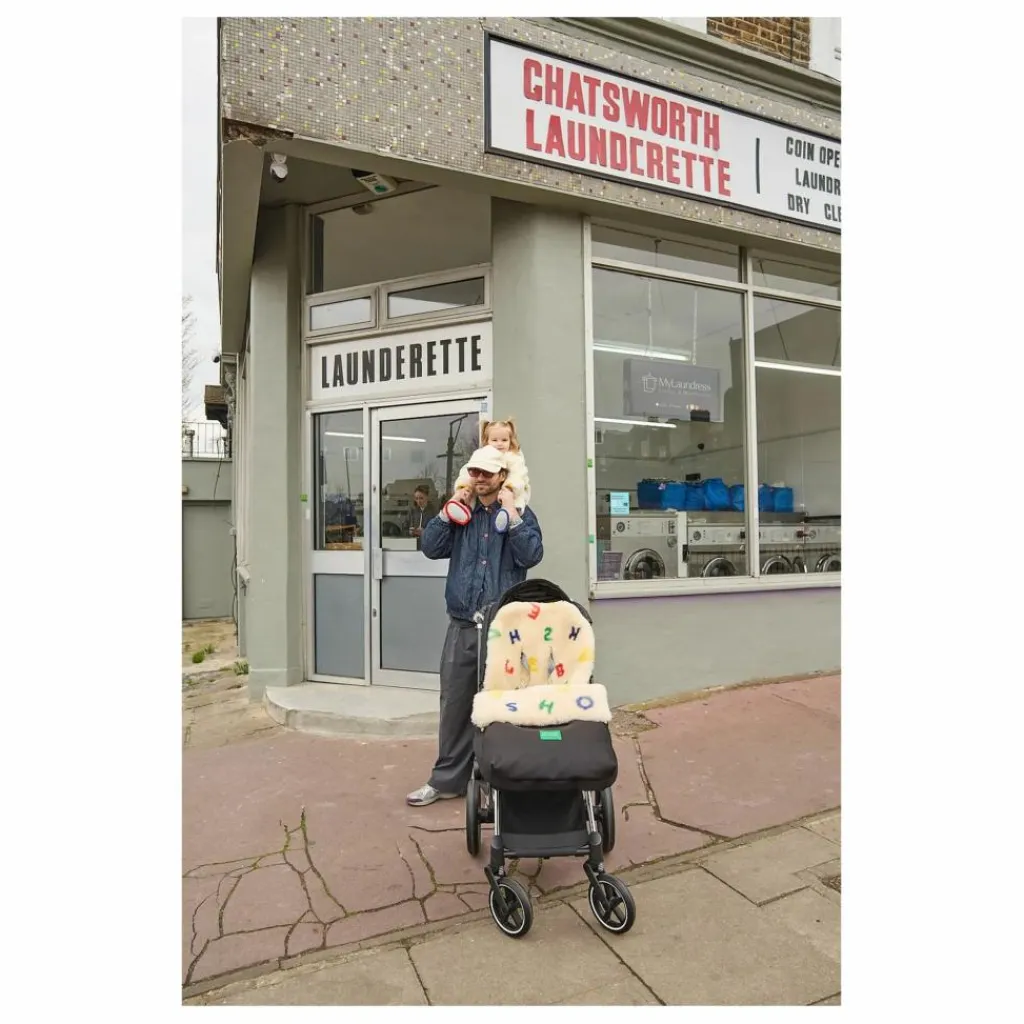- ÉDITION LIMITÉE ! Bobo Choses et BINIBAMBA bousculent les habitudes en matière de câlins avec une collection produite de manière responsable et durable.Entrez dans un monde où l’ABC prend vie… avec l’édition limitée de l’imprimé Letterland qui apporte l’explosion de couleurs de Bobo à la moufle en peau de mouton culte de BINIBAMBA. Stimulez leur curiosité avec ce joyeux mélange de lettres… où les couleurs primaires audacieuses et la douceur nuageuse de la laine mérinos entièrement naturelle créent un paysage magique pour les petits aventuriers.Protégez votre Binibabe des éléments grâce à une station de câlins exclusive, résistante au vent et à l’eau, qui l’emmène partout en tout confort. Quel HERO ! Le secret pour sortir à l’extérieur, peu importe le temps qu’il fait, c’est d’augmenter la chaleur grâce à notre manchon Letterland Puffmuff® BOBO X BINI à coupe universelle et en édition limitée.Généreusement doublée de notre peau de mouton mérinos de luxe, douce et facile à enfoncer, notre moufle est conçue pour durer longtemps, pour que votre Binibabe® puisse s’asseoir sans soutien (vers l’âge de 6 mois) jusqu’à ce qu’il cesse d’utiliser sa poussette.Hypoallergénique, naturellement antibactérienne et dotée de superpouvoirs de régulation thermique, notre luxueuse chancelière en peau de mouton les gardera bien au chaud.