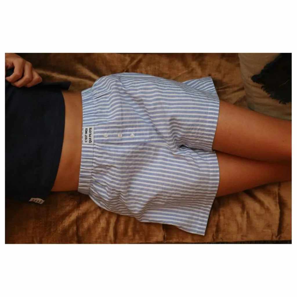 Les caleçons sont unisexes. Ils sont aussi un peu plus longs, avec une braguette fermée et une coupe droite au dos, pensés pour être portés aussi bien en intérieur qu’en extérieur, comme un short un brin décalé.